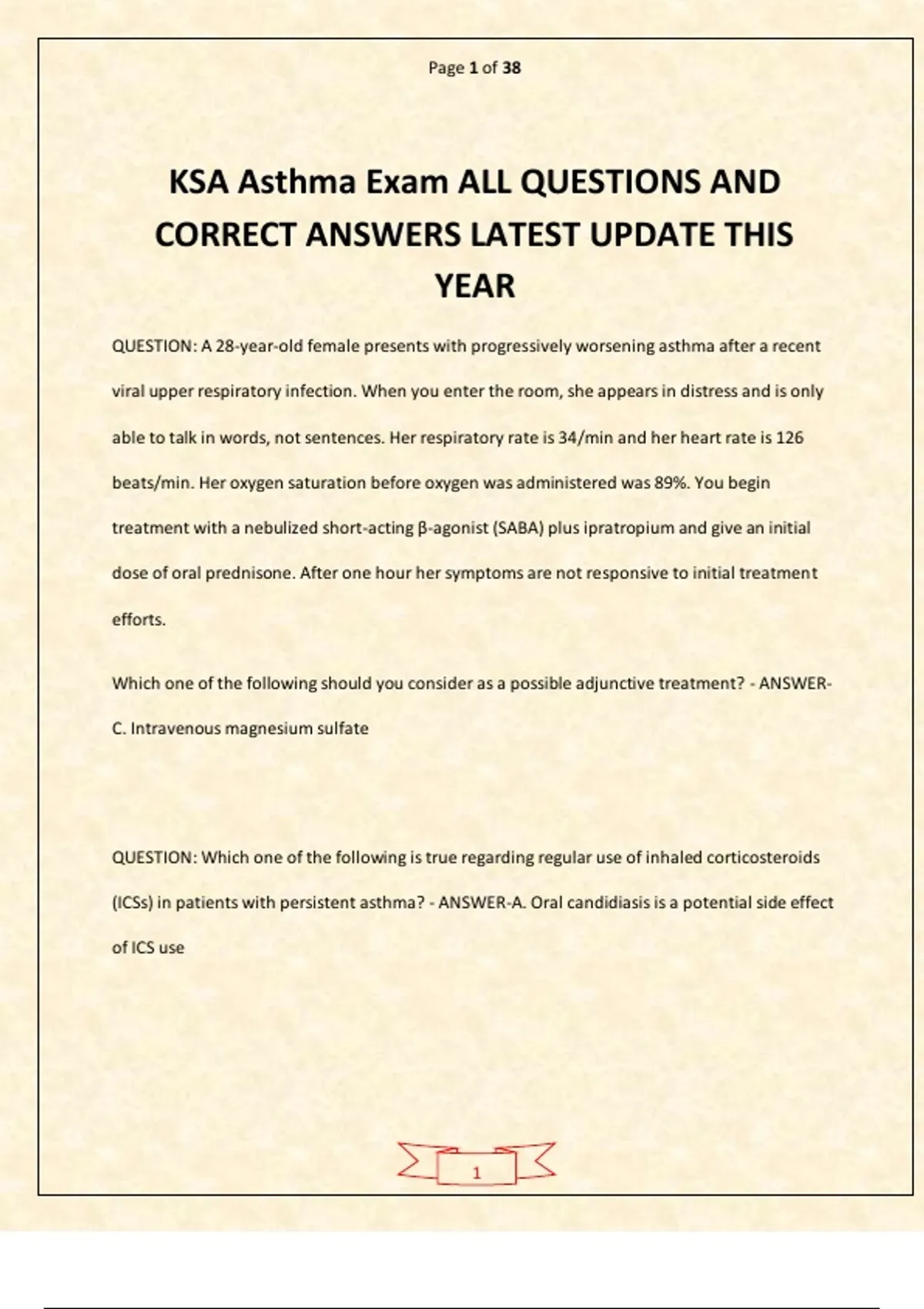 KSA Asthma Exam ALL QUESTIONS AND