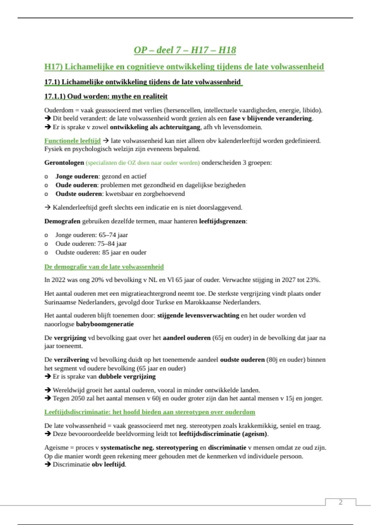 H17) Lichamelijke en cognitieve ontwikkeling tijdens de late volwassenheid
