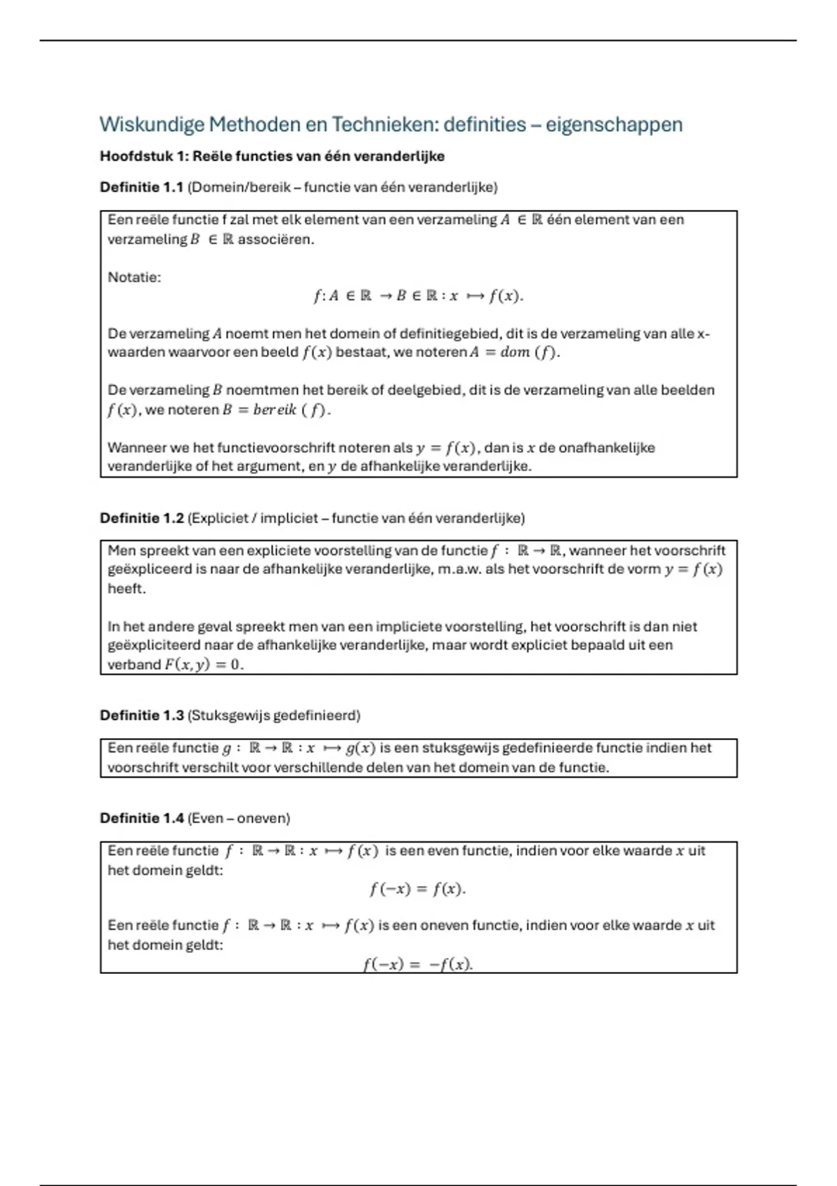 Hoofdstuk 1: Reële functies van één veranderlijke