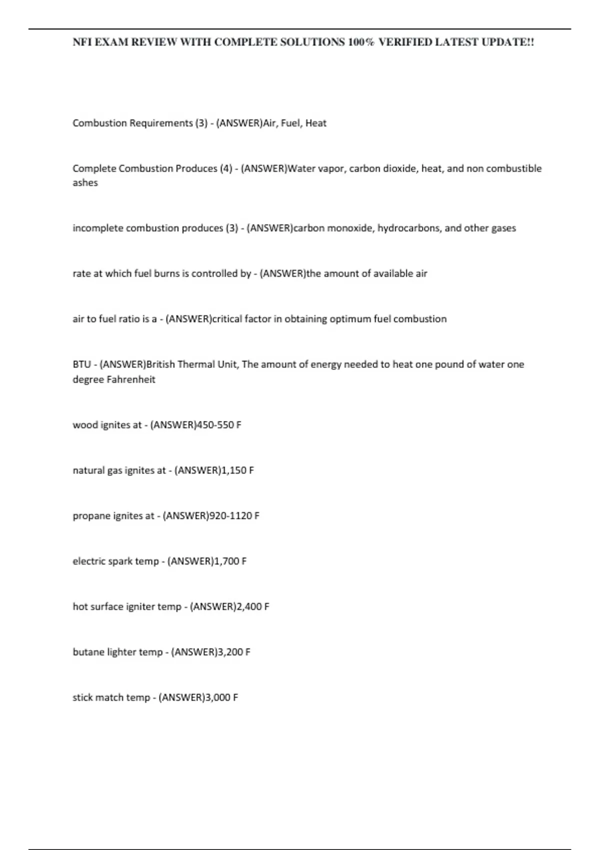Complete Combustion Produces (4) - (ANSWER)Water vapor, carbon dioxide, heat, and non combustible