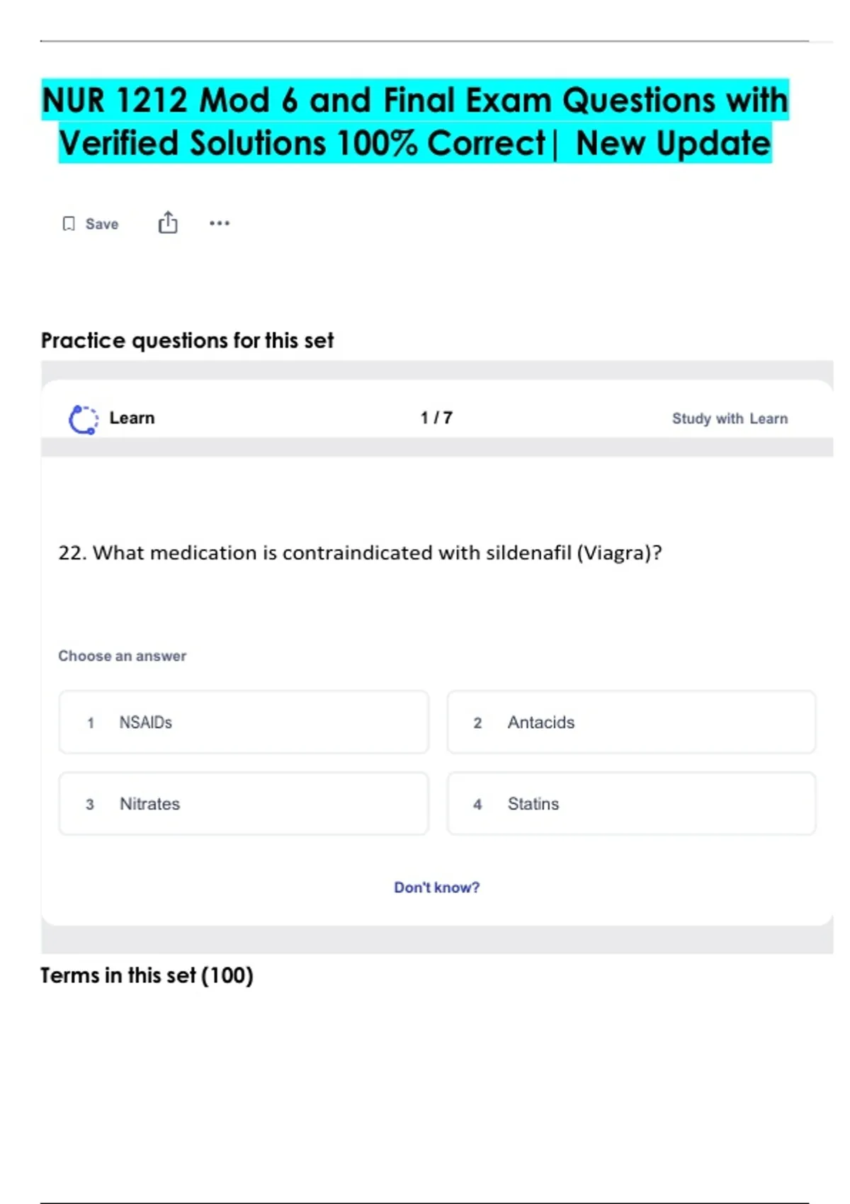 NUR 1212 Mod 6 and Final Exam Questions with