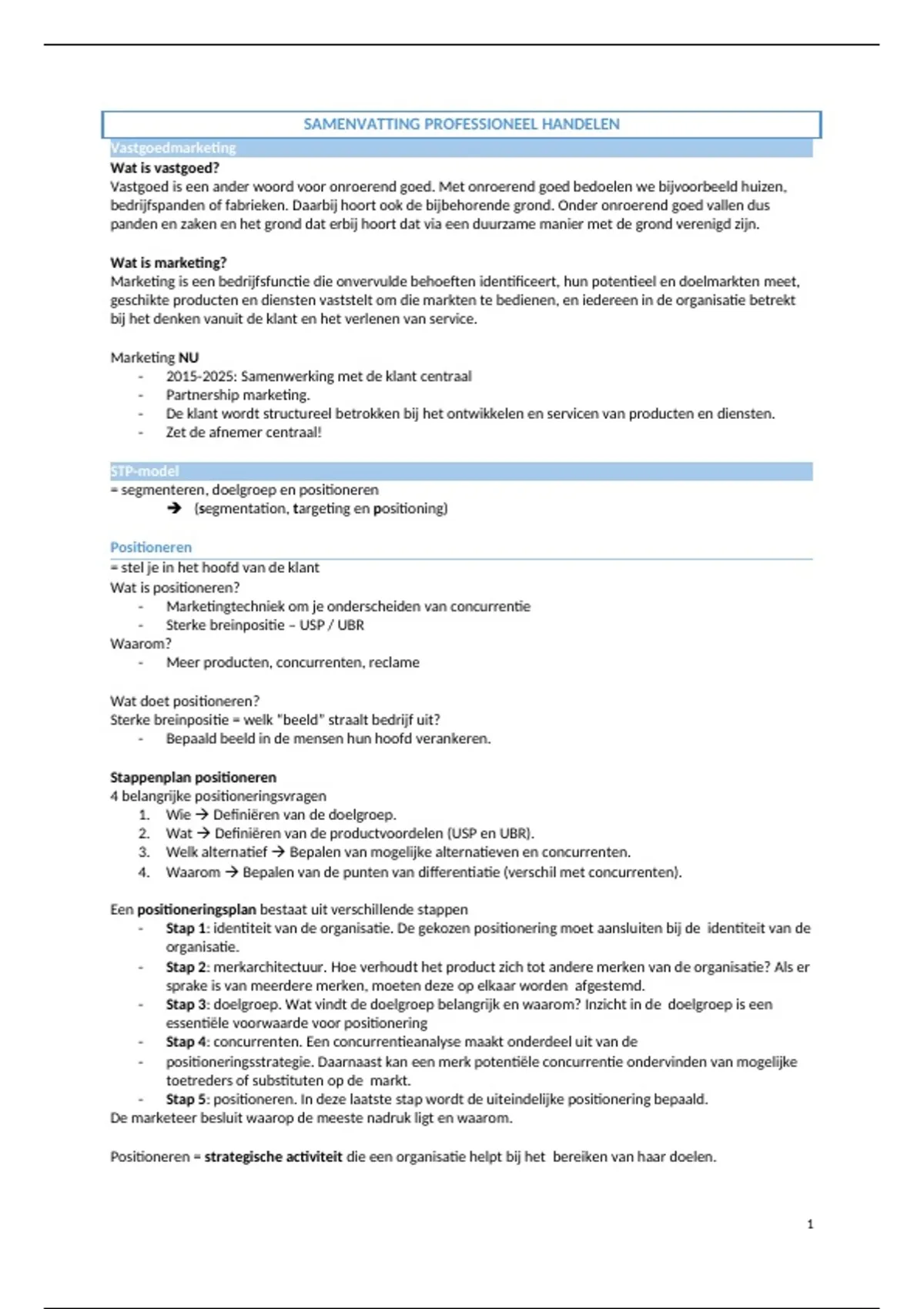 Samenvatting - Professioneel Handelen: Vastgoedmarketing
