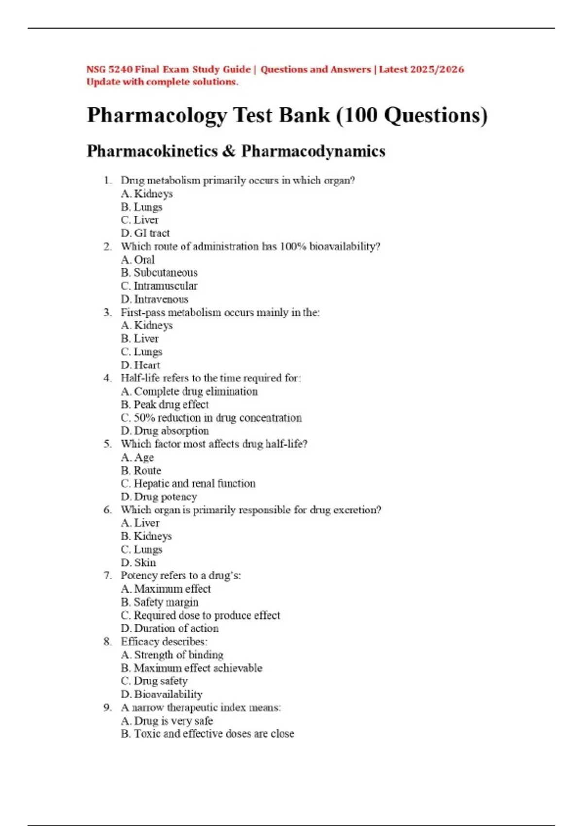 NSG 5240 Final Exam Study Guide | Questions and Answers | Latest 2025/2026 Update with complete solutions.