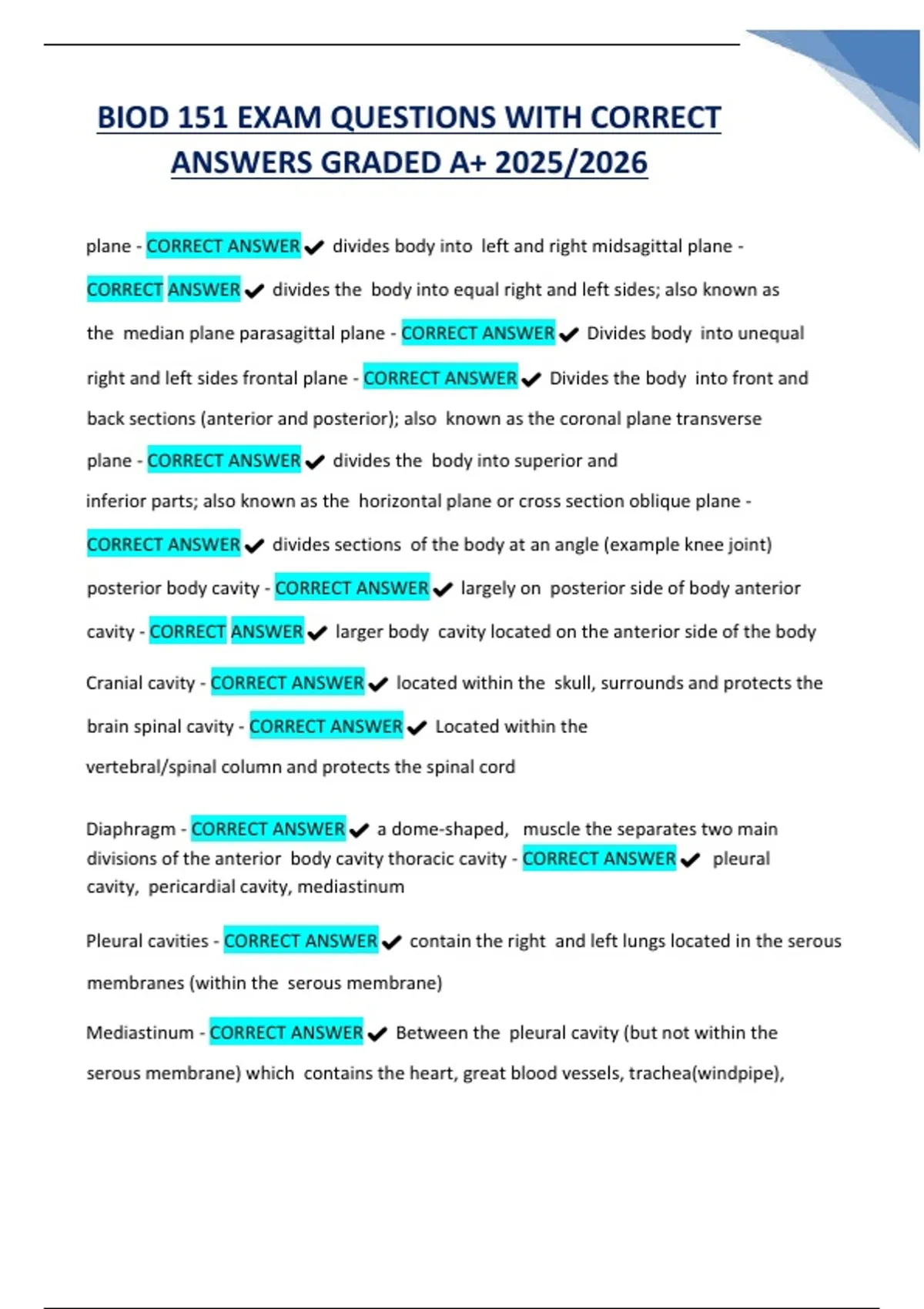 BIOD 151 EXAM QUESTIONS WITH CORRECT ANSWERS GRADED A+ 2025/2026