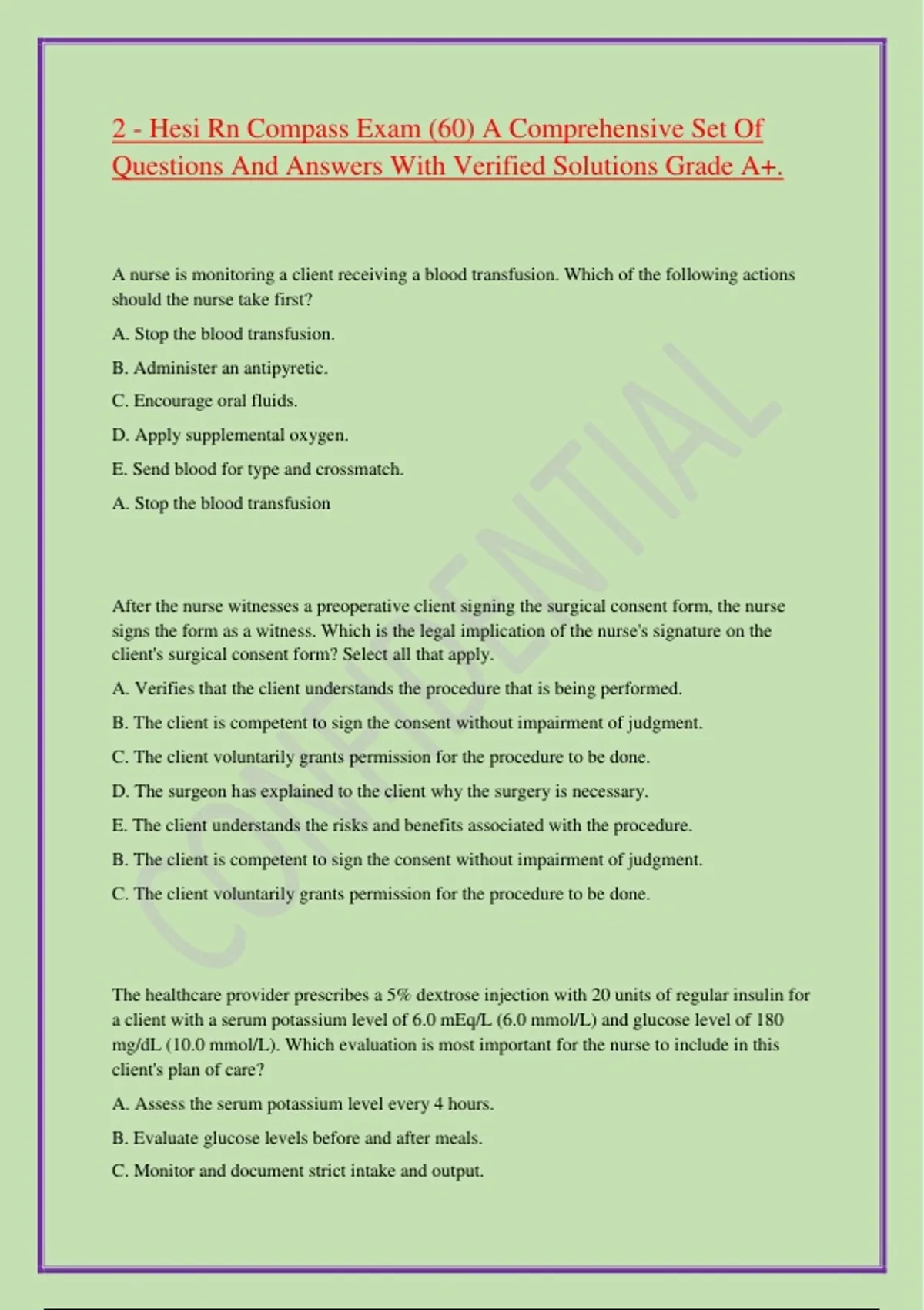 2 - Hesi Rn Compass Exam (60) A Comprehensive Set Of
