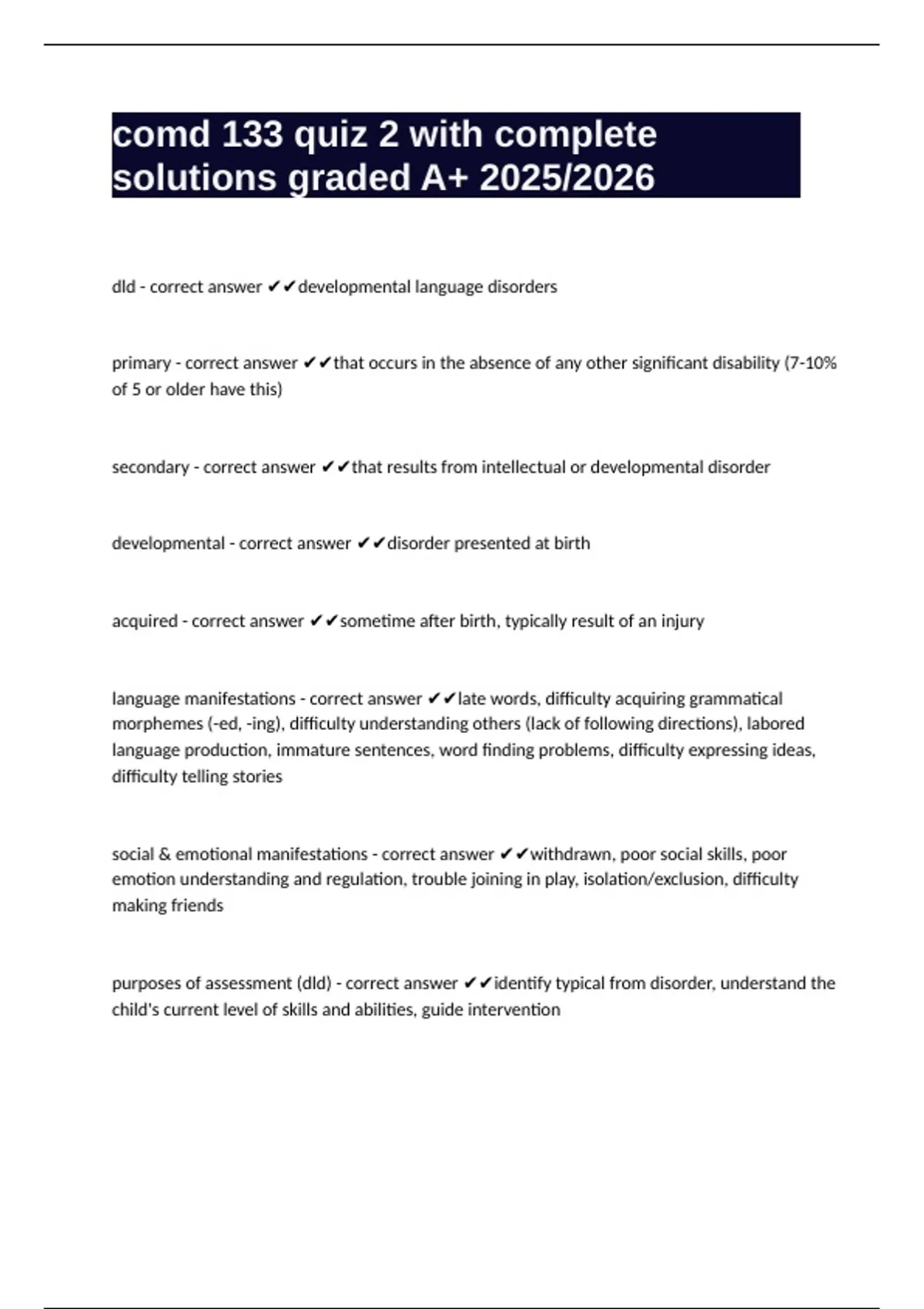 comd 133 quiz 2 with complete solutions graded A+ 2025/2026