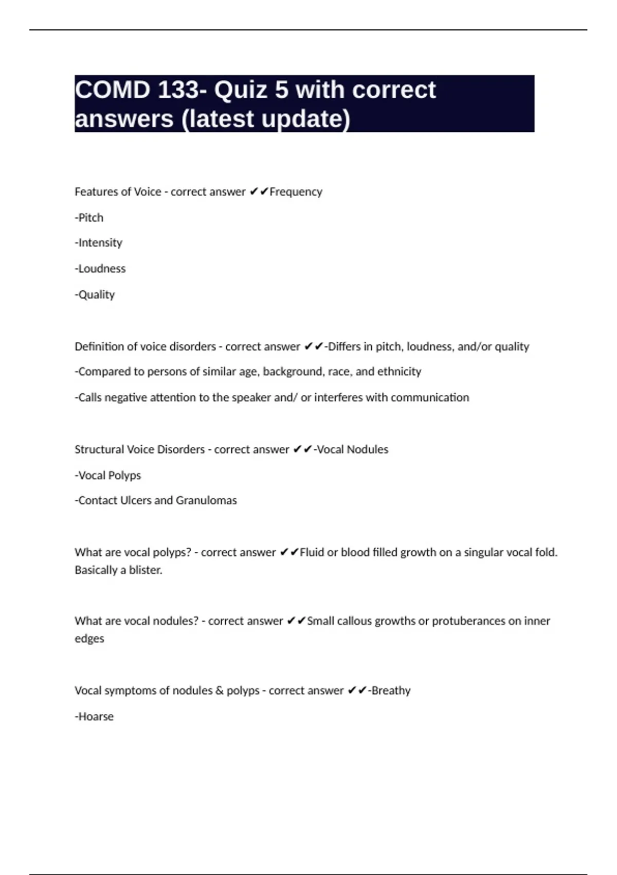 Definition of voice disorders - correct answer ✔✔-Differs in pitch, loudness, and/or quality