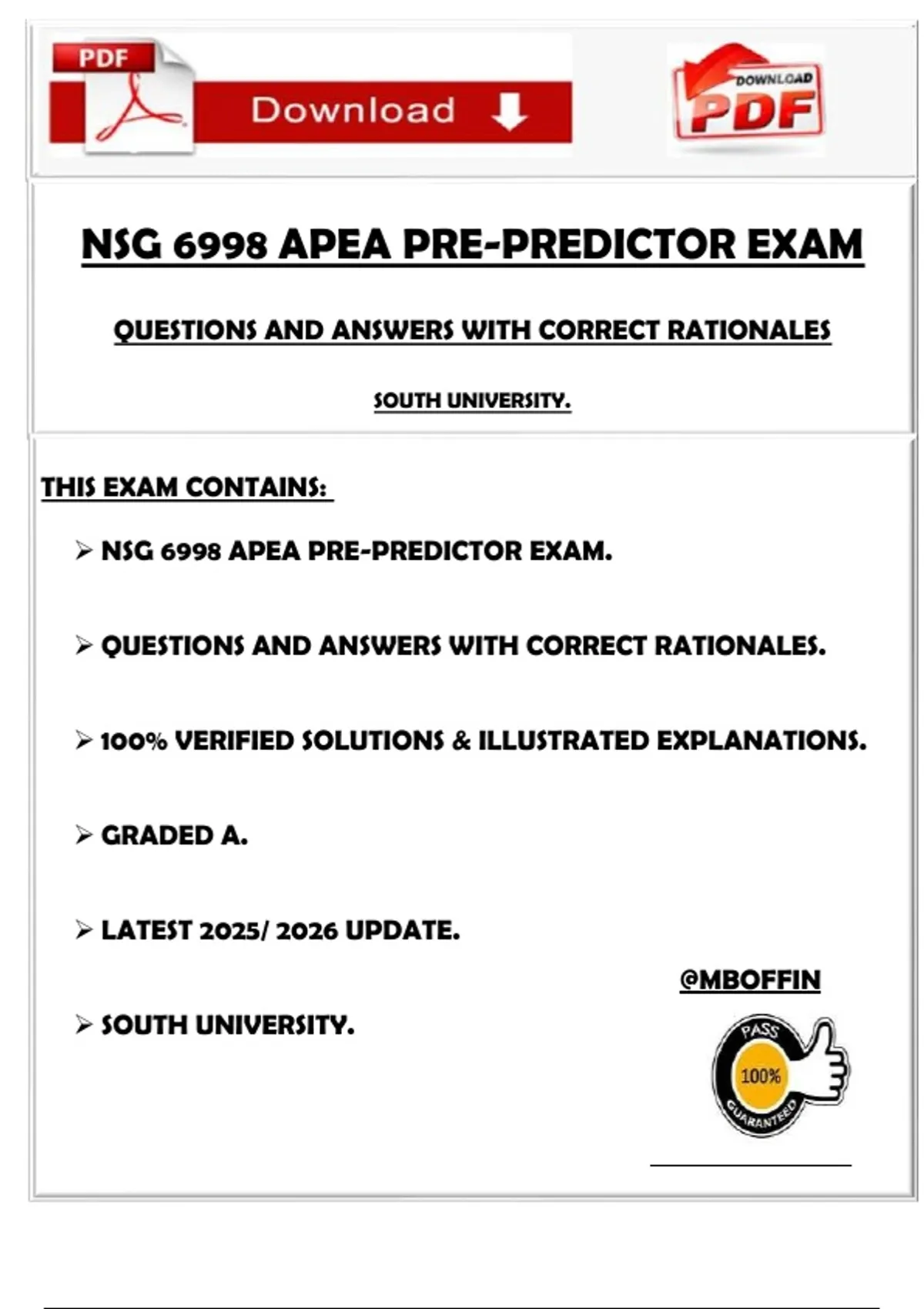 ➢ NSG 6998 APEA PRE-PREDICTOR EXAM.