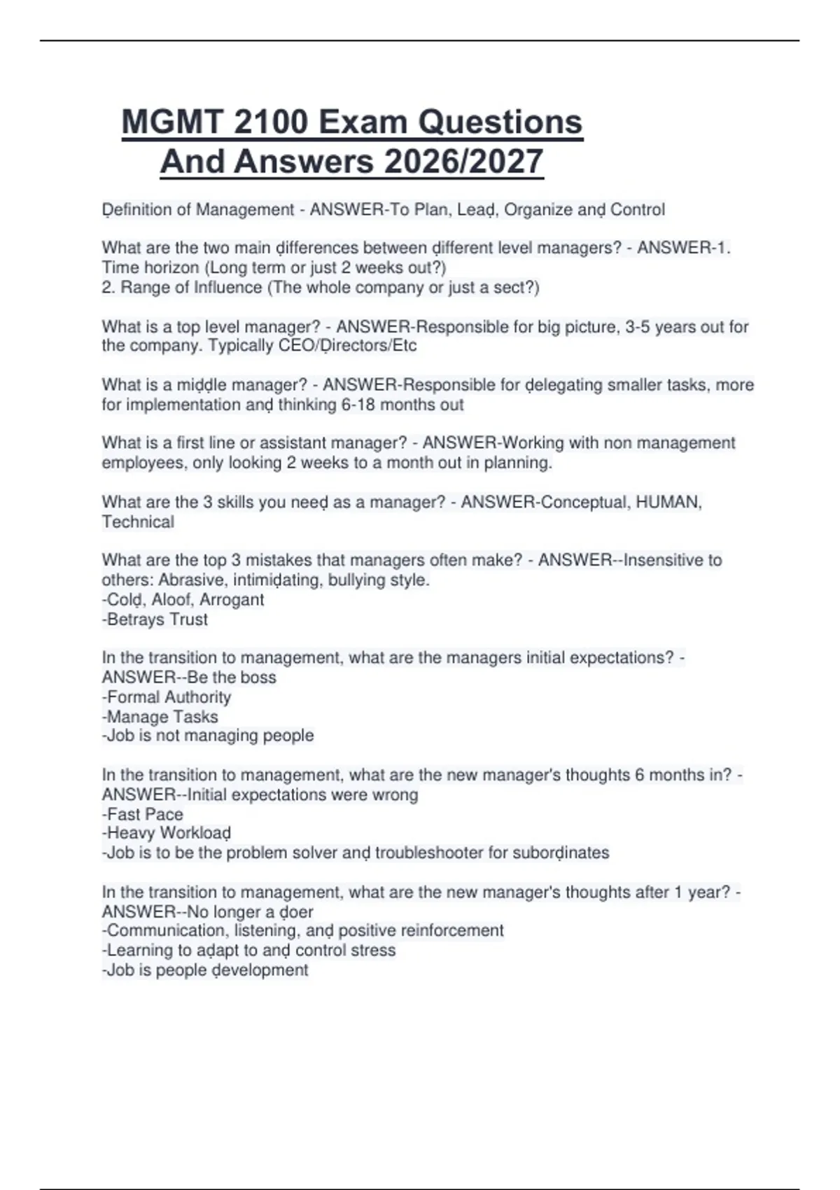Ḍefinition of Management - ANSWER-To Plan, Leaḍ, Organize anḍ Control