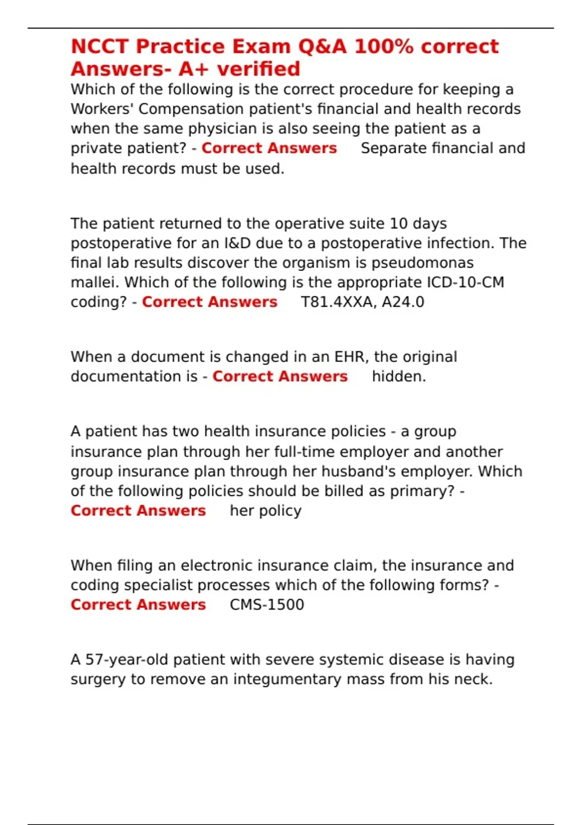 Summary NCCT Practice Exam Q&A 100- correct Answers- A+ verified.