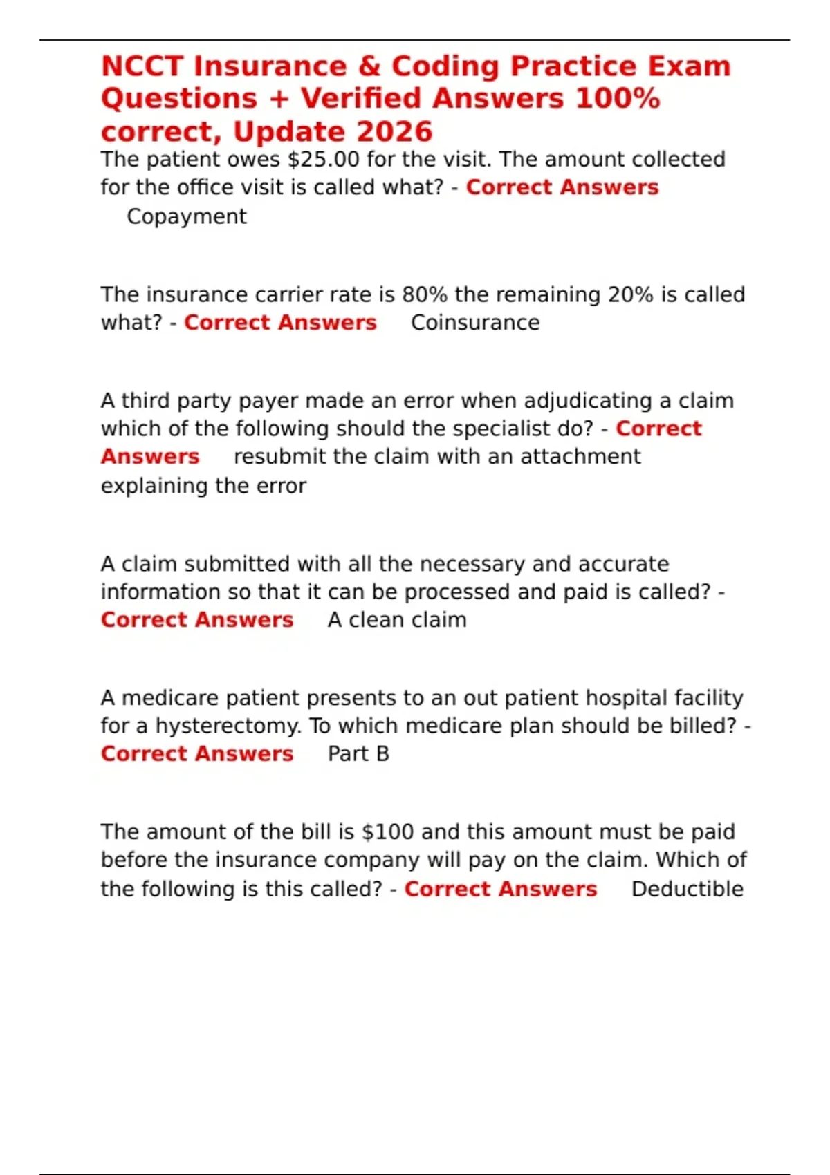 , NCCT Insurance & Coding Practice Exam
