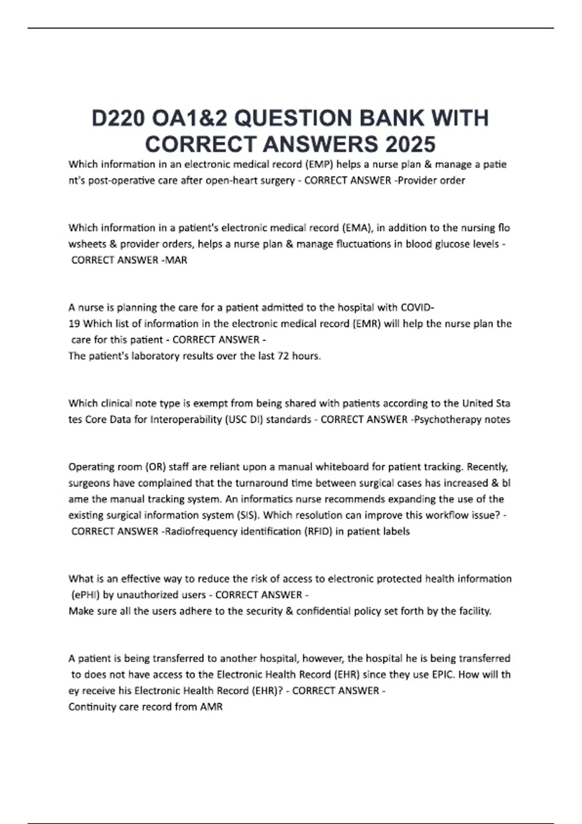 D220 OA1&2 QUESTION BANK WITH CORRECT ANSWERS