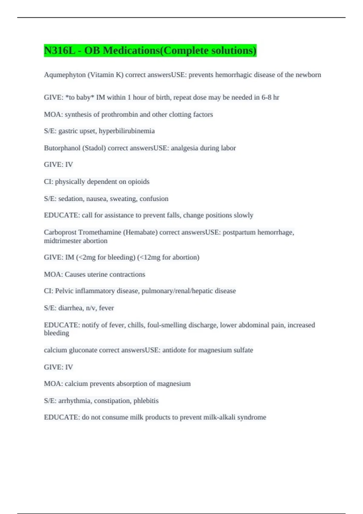 calcium gluconate correct answersUSE: antidote for magnesium sulfate