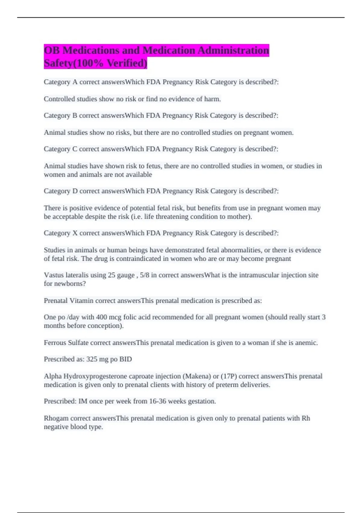 Prenatal Vitamin correct answersThis prenatal medication is prescribed as: