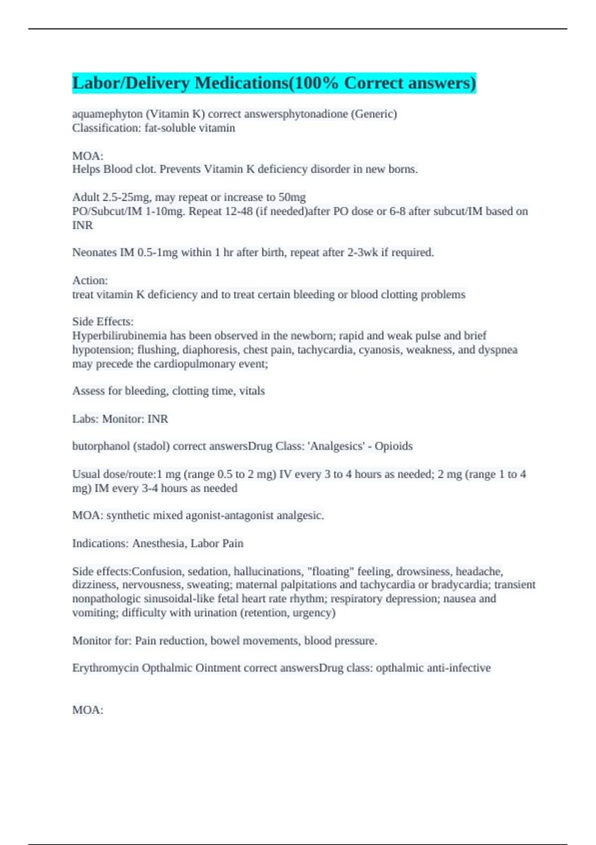 butorphanol (stadol) correct answersDrug Class: 'Analgesics' - Opioids
