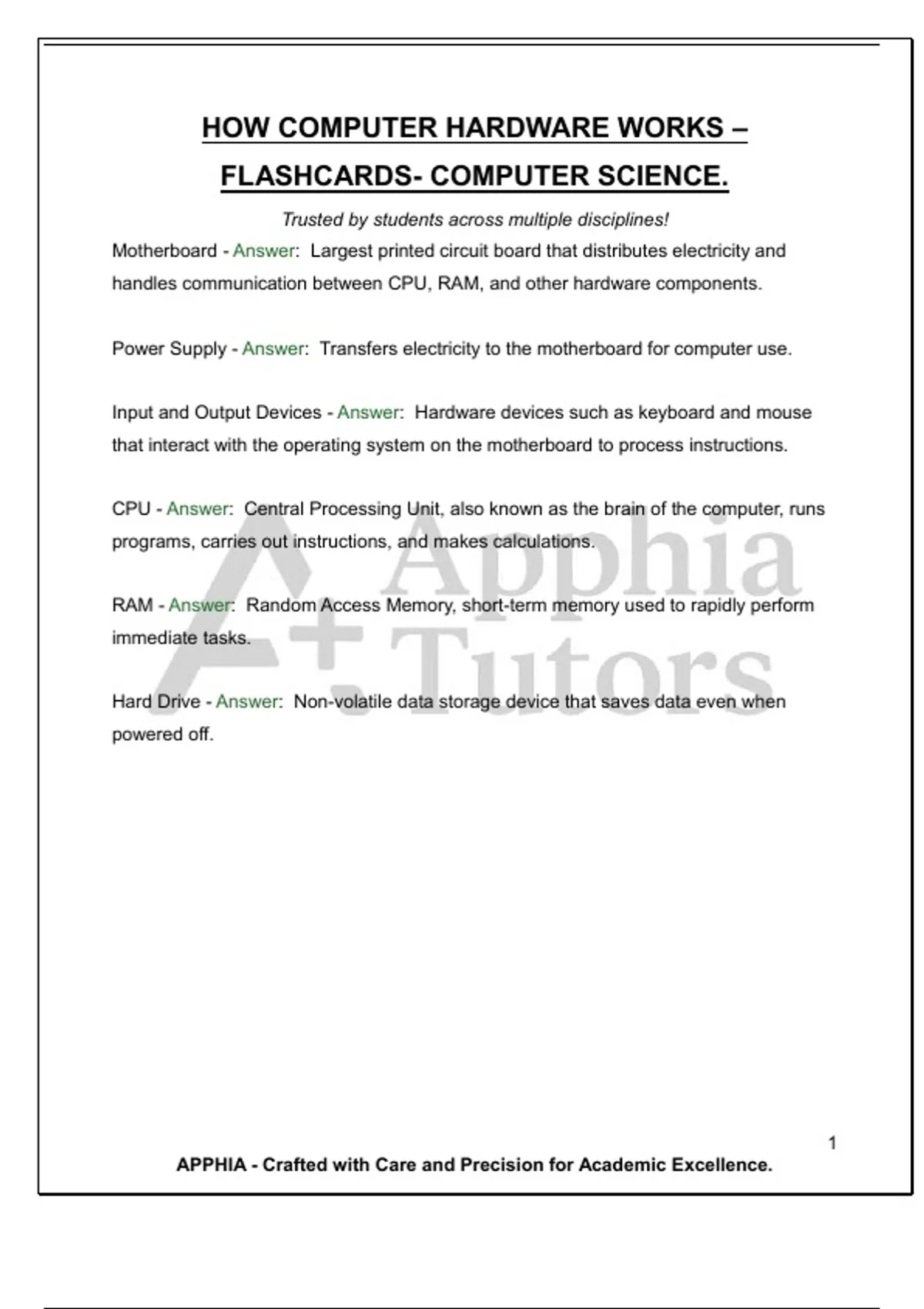 HOW COMPUTER HARDWARE WORKS – FLASHCARDS- COMPUTER SCIENCE. Trusted by students across multiple disciplines!