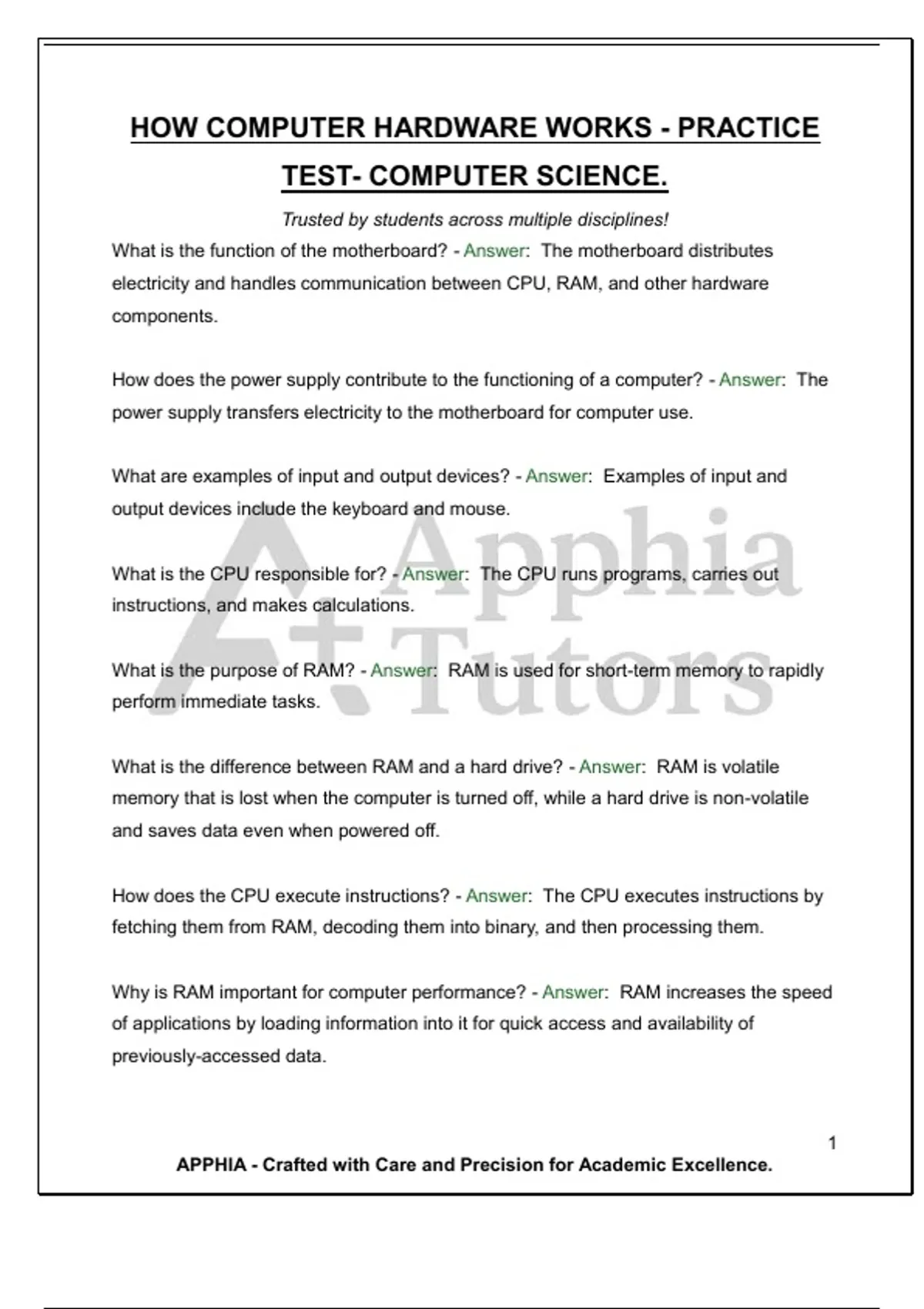 HOW COMPUTER HARDWARE WORKS - PRACTICE TEST- COMPUTER SCIENCE. Trusted by students across multiple disciplines!