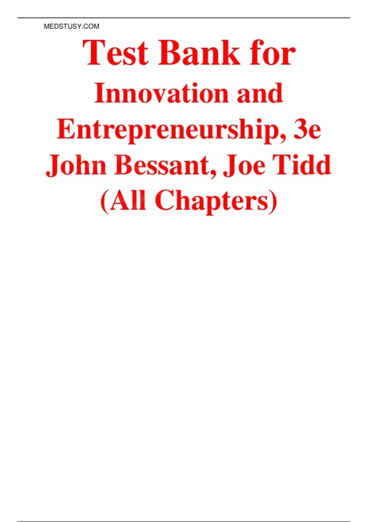 Test Bank for Innovation and Entrepreneurship, 8e John Bessant, Joe Tidd (All Chapters) ||ISBN: 9781394252060