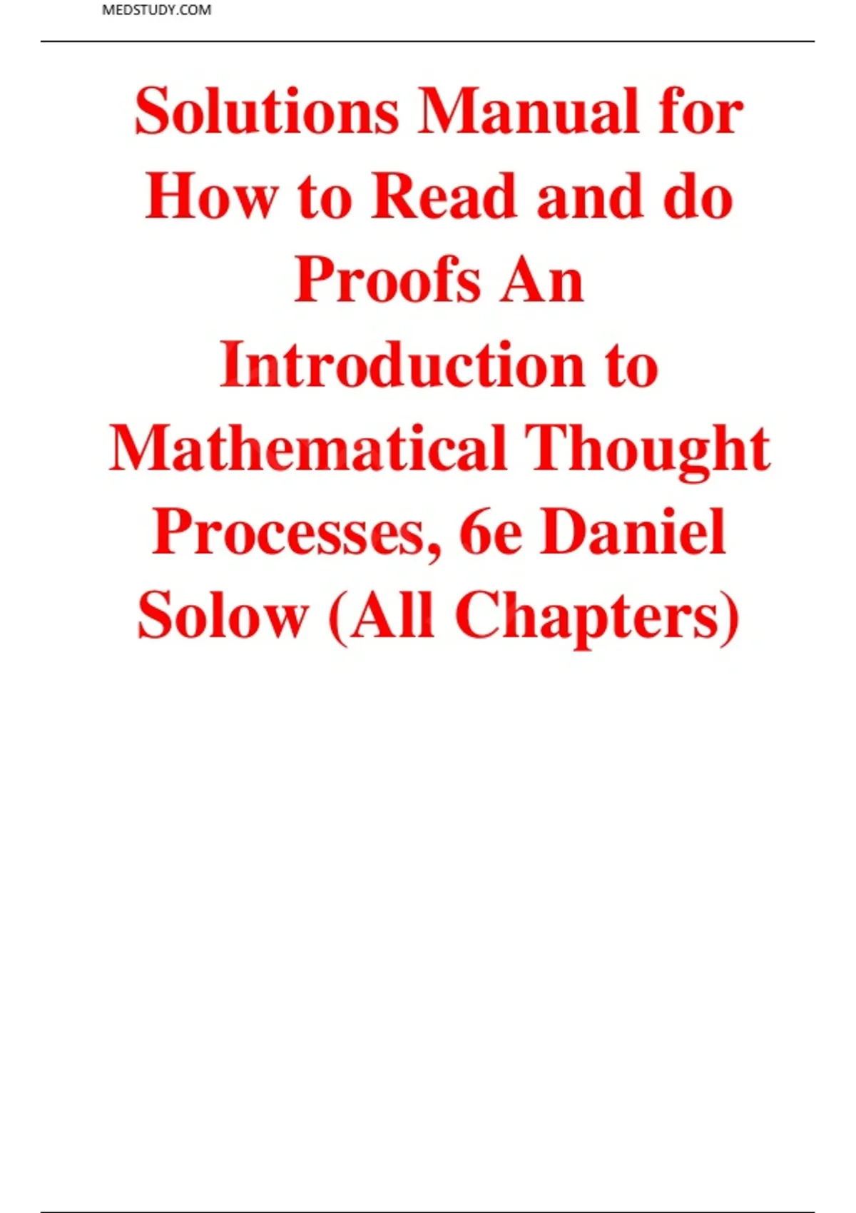 Solutions Manual for How to Read and do Proofs An Introduction to Mathematical Thought Processes, 6e Daniel Solow (All Chapters)
