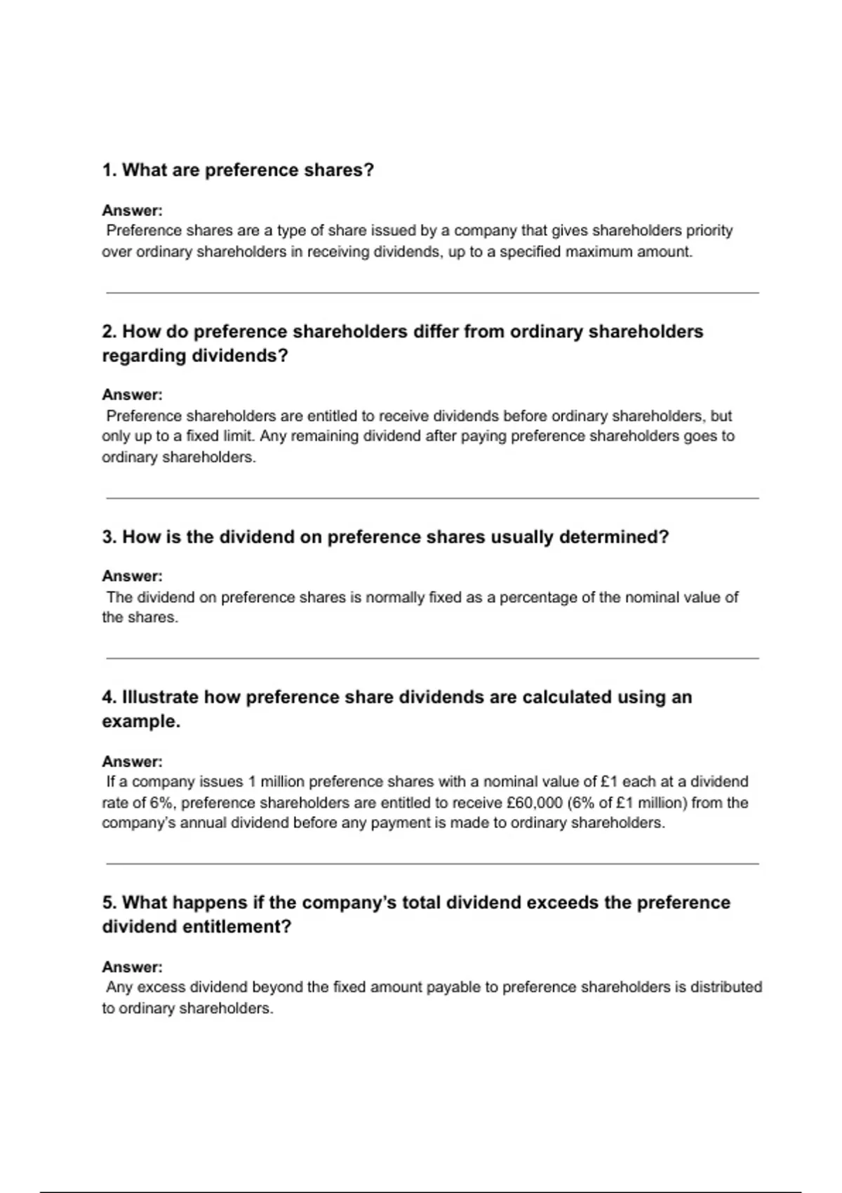 rate of 6%, preference shareholders are entitled to receive £60,000 (6% of £1 million) from the