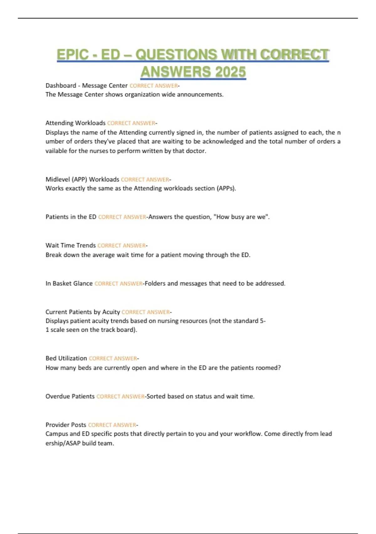 Attending Workloads CORRECT ANSWER-