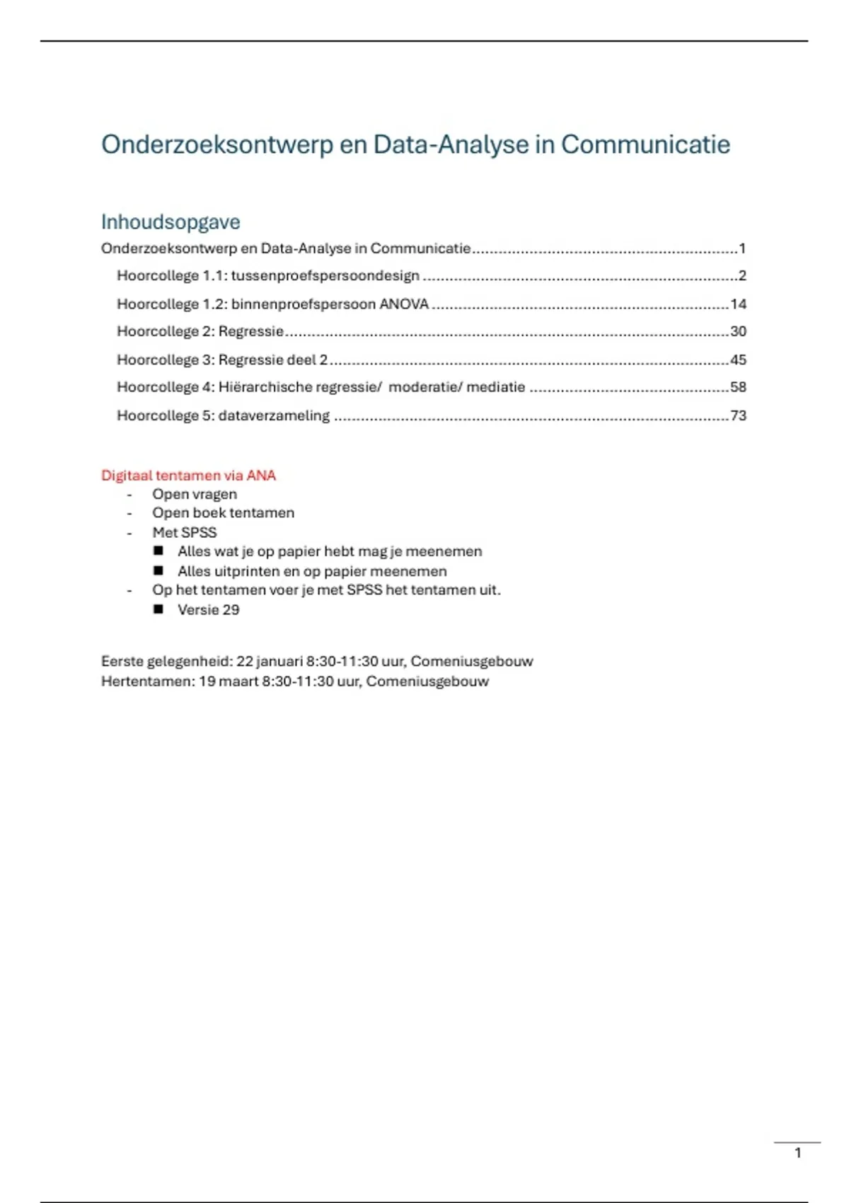 Onderzoeksontwerp en Data-Analyse in Communicatie............................................................1