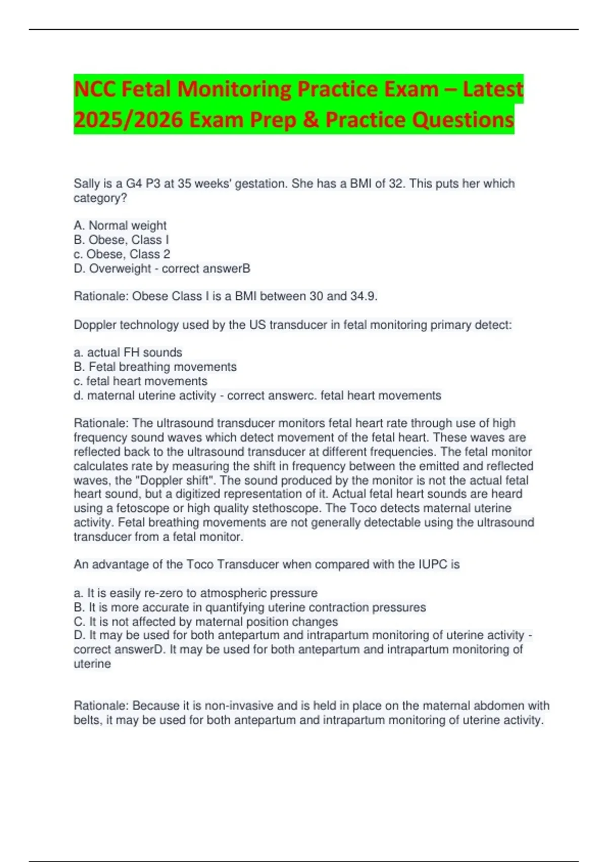 correct answerD. It may be used for both antepartum and intrapartum monitoring of
