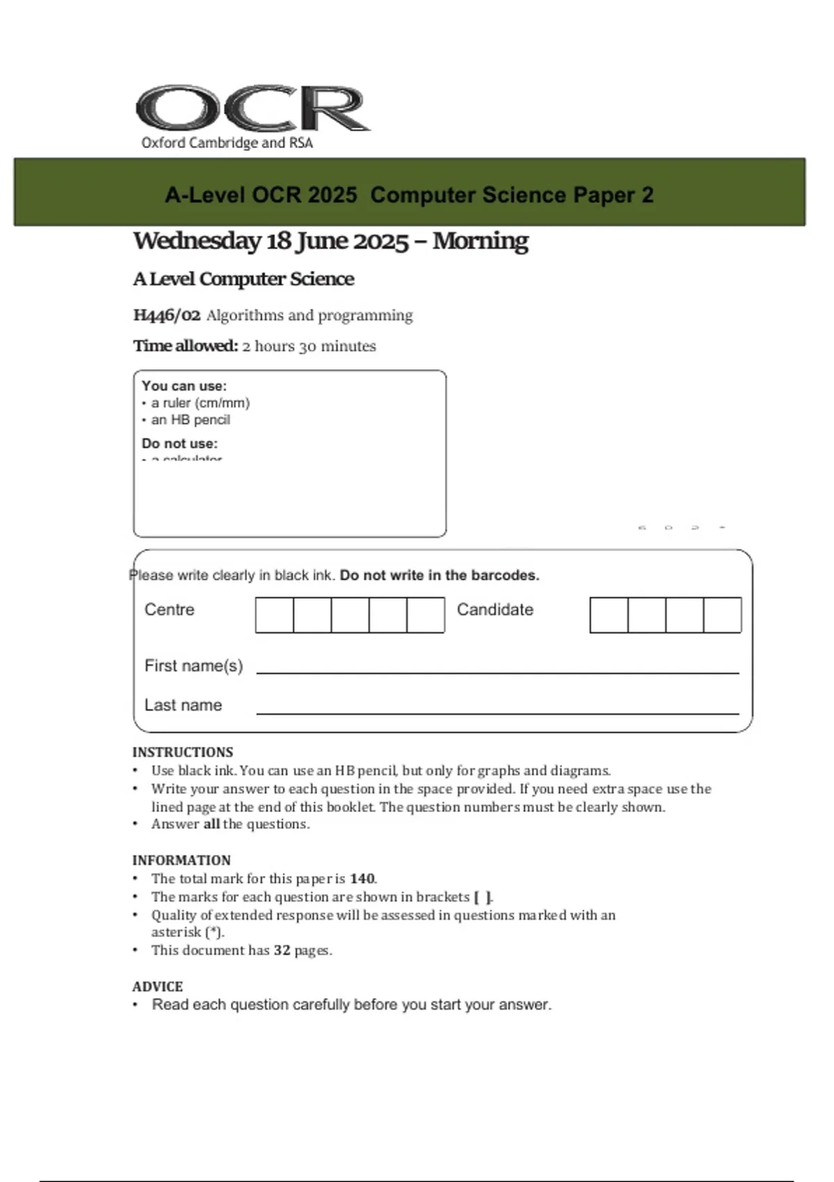 A-Level OCR 2025 Computer Science Paper 2