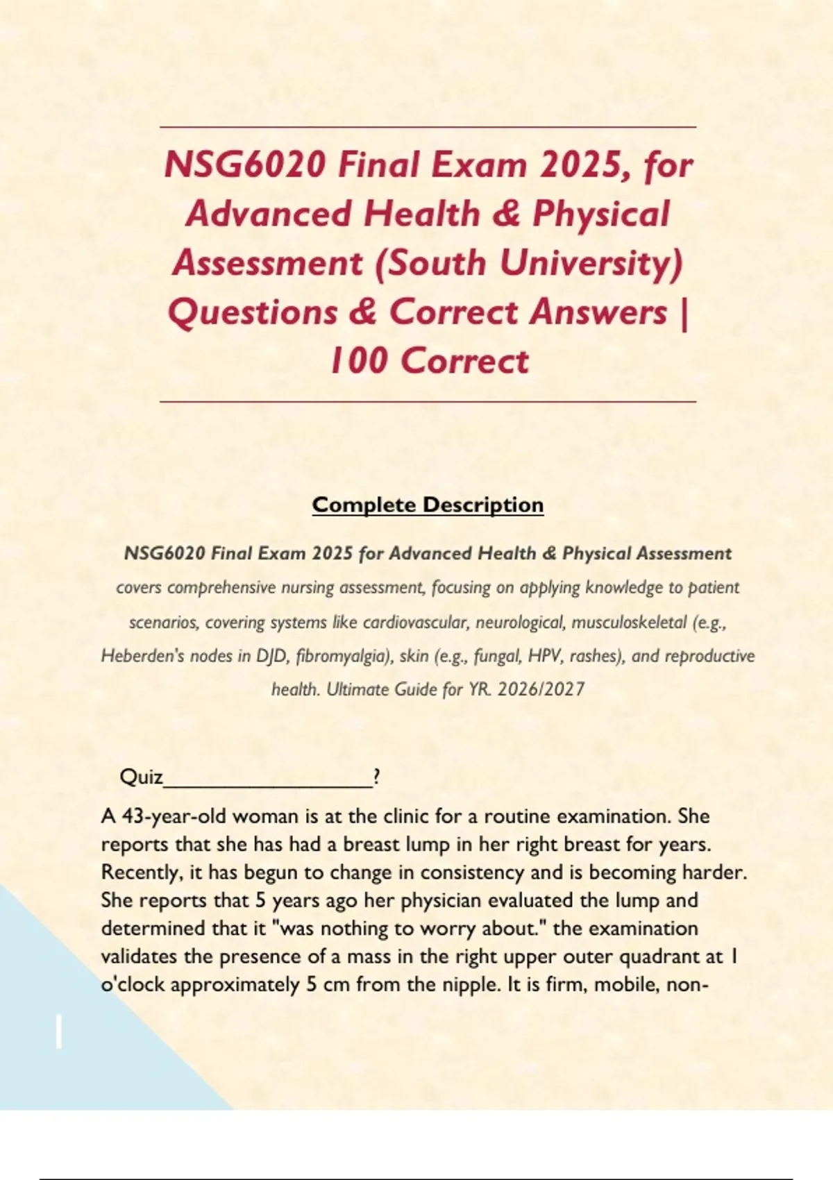 NSG6020 Final Exam 2025 for Advanced Health & Physical Assessment