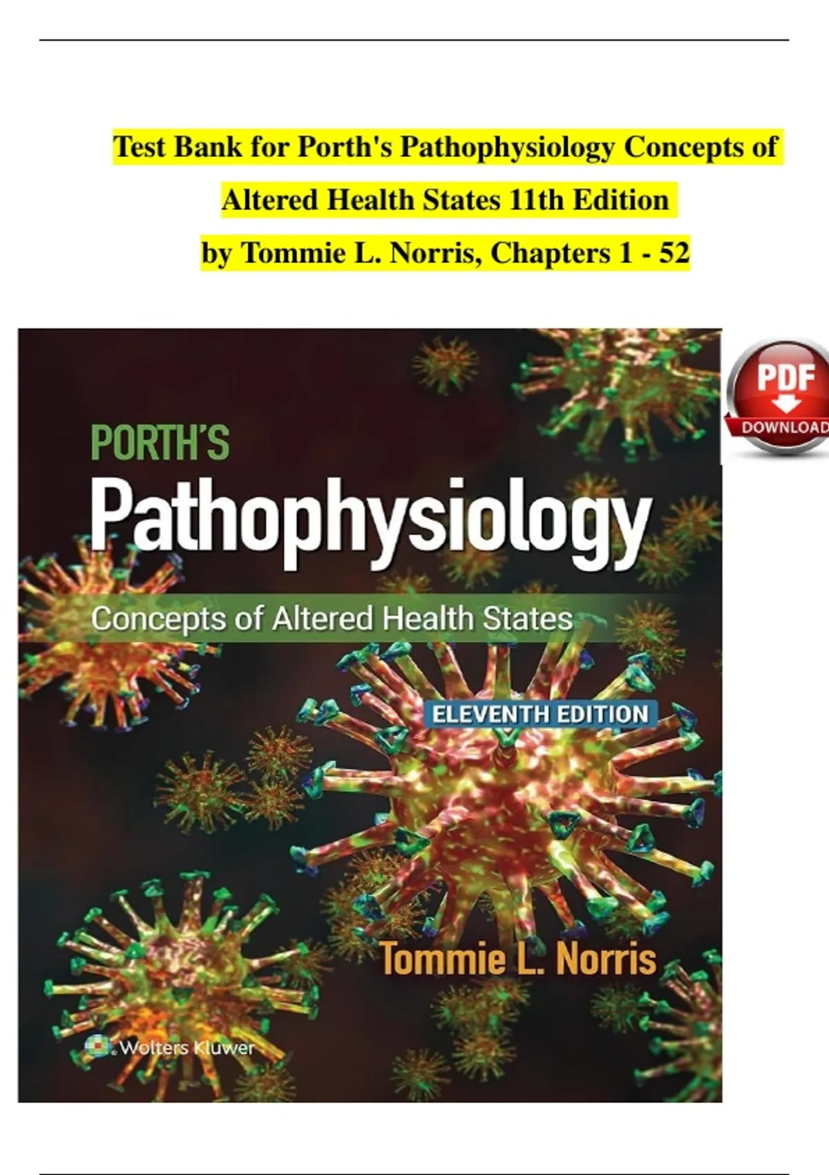 , Porth's Pathophysiology Concepts of Altered Health 11th Edition Norris Test Bank