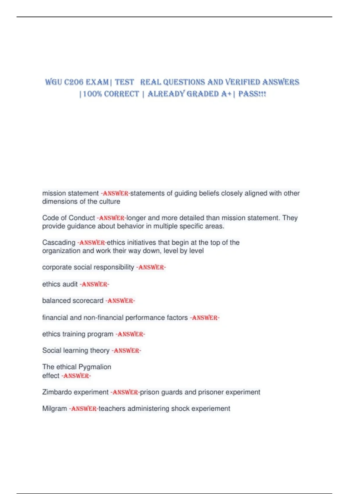 WGU C206 exam| Test REAL QUESTIONS AND VERIFIED ANSWERS |100% CORRECT | ALREADY GRADED a+| pass!!!