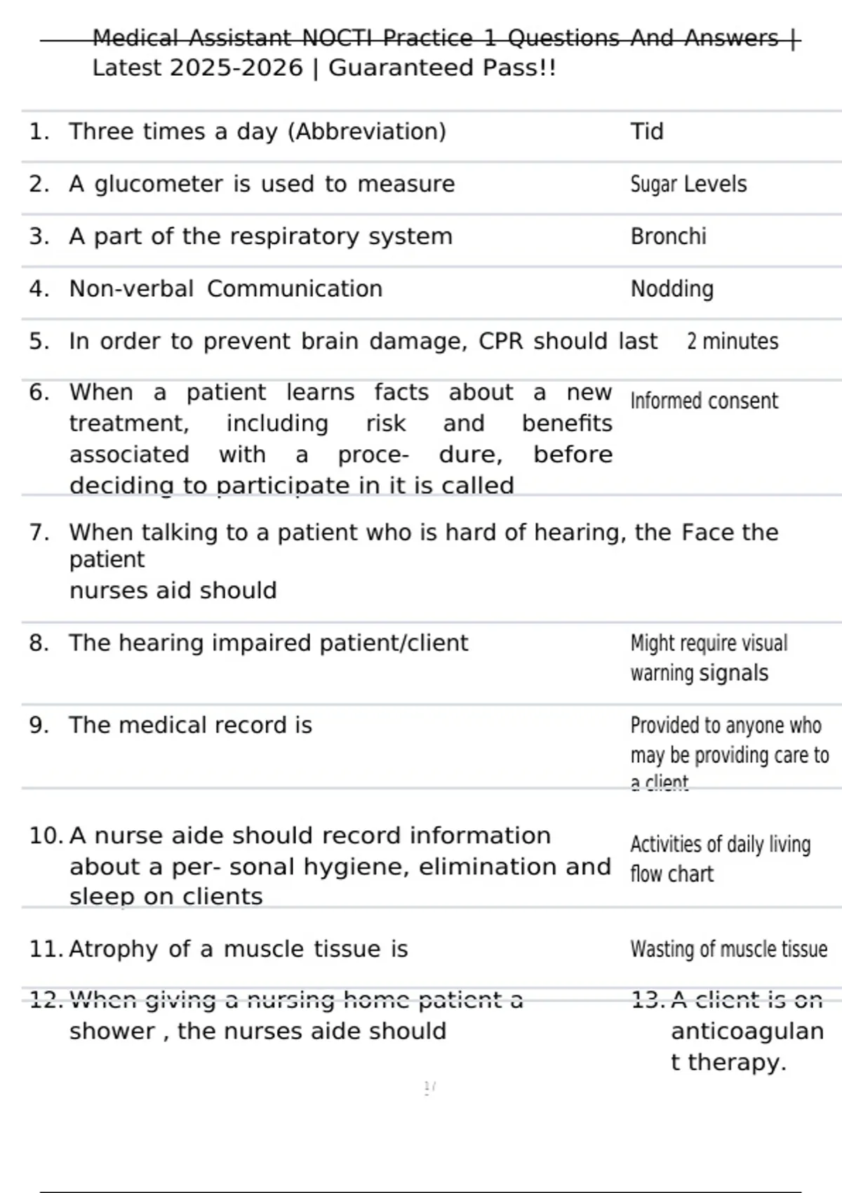Medical Assistant NOCTI Practice 1 Questions And Answers |