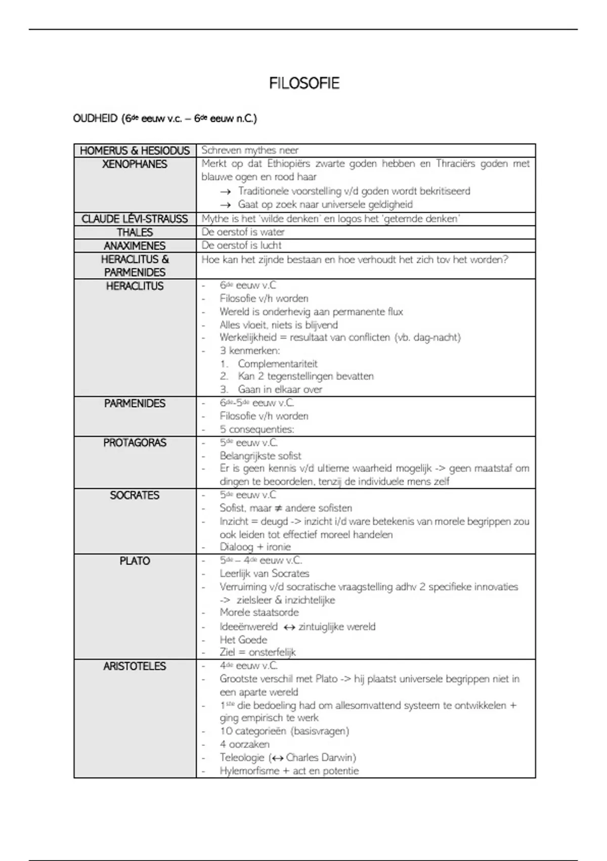 Samenvatting Overzicht filosofen + belangrijkste kenmerken