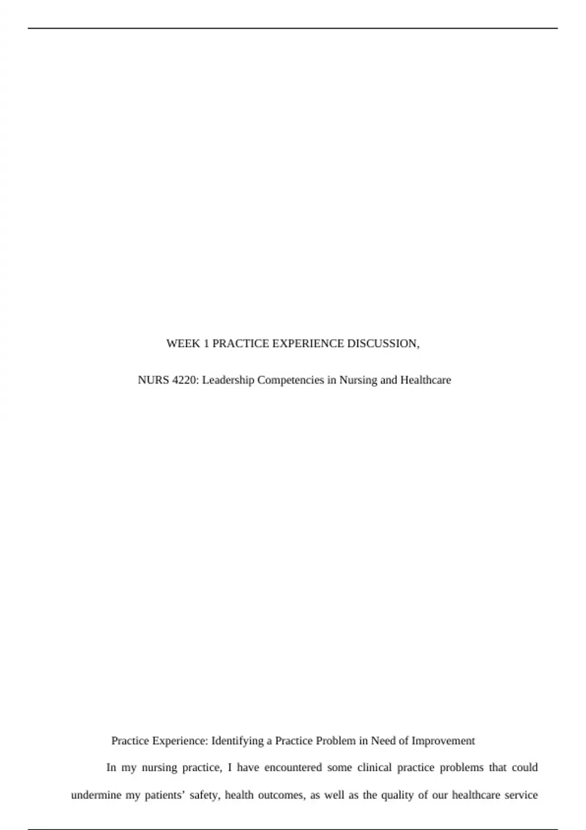 NURS 4220 Practicums with Solutions (Week 1 to 6)