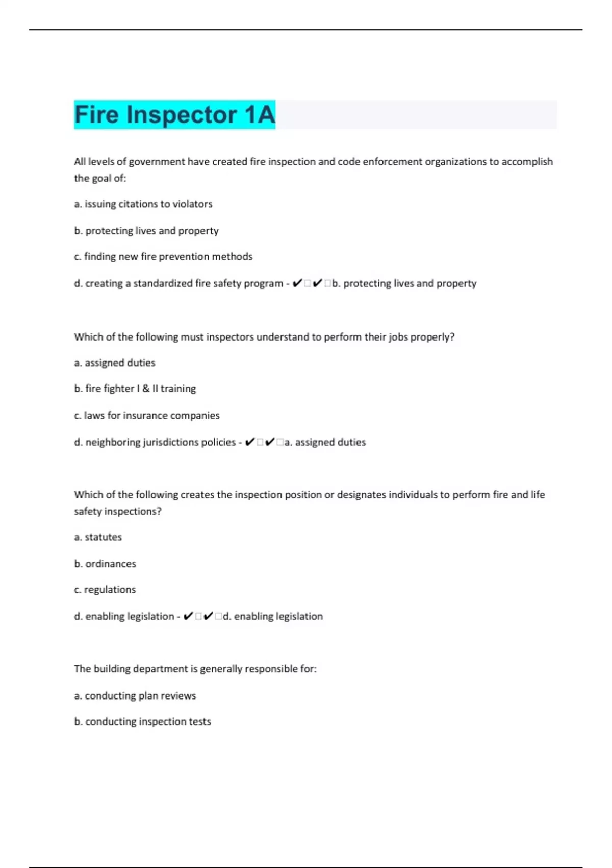 Fire Inspector 1A|77 Practice Questions With Complete Solutions