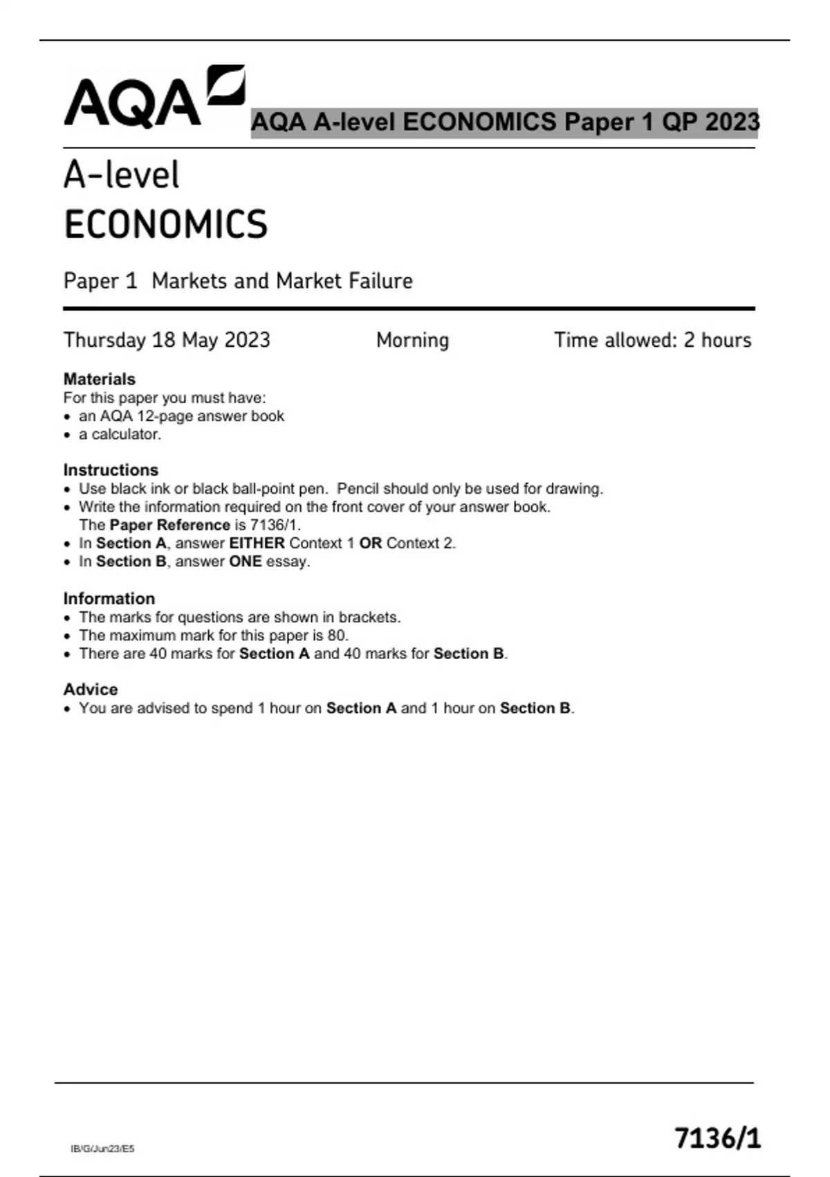AQA A-level ECONOMICS Paper 1 QP 2023