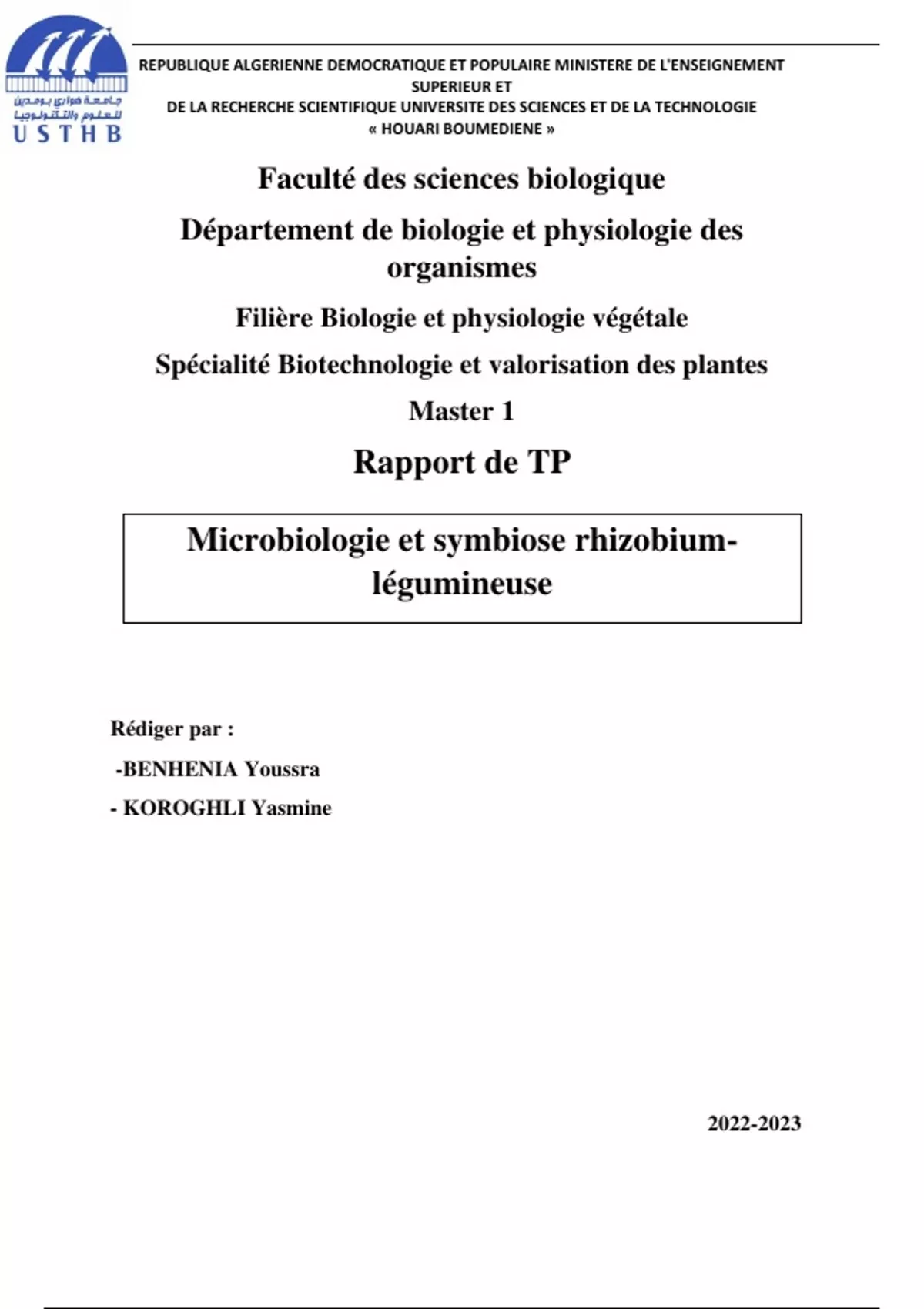 Microbiologie et symbiose rhizobium-légumineuse