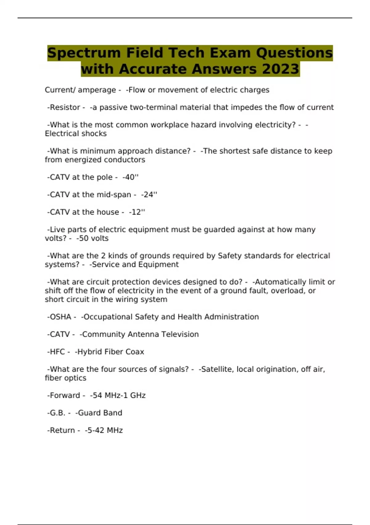 Spectrum Field Tech/Field tech Exams - Questions and Answers - Package Deal