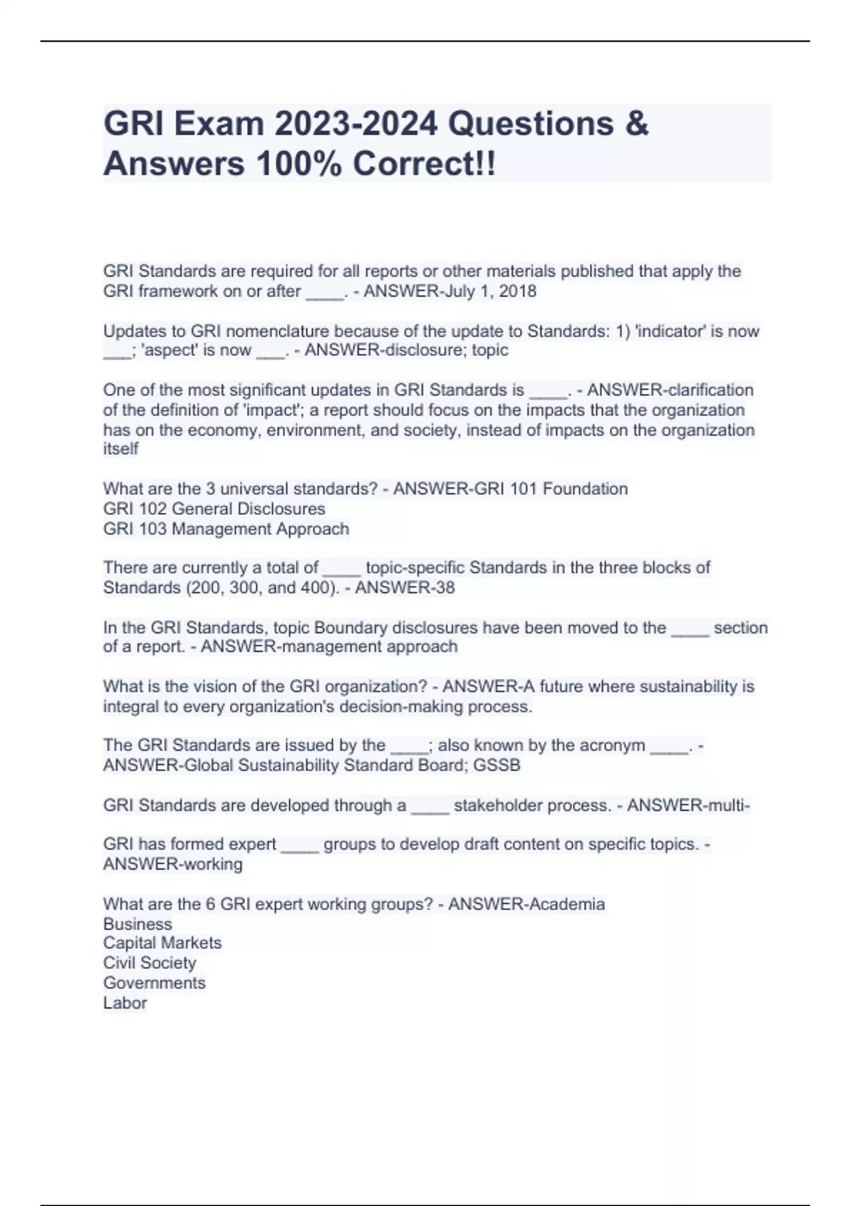 GRI (Learning How to Fulfill GRI Data) with Complete Solutions!!