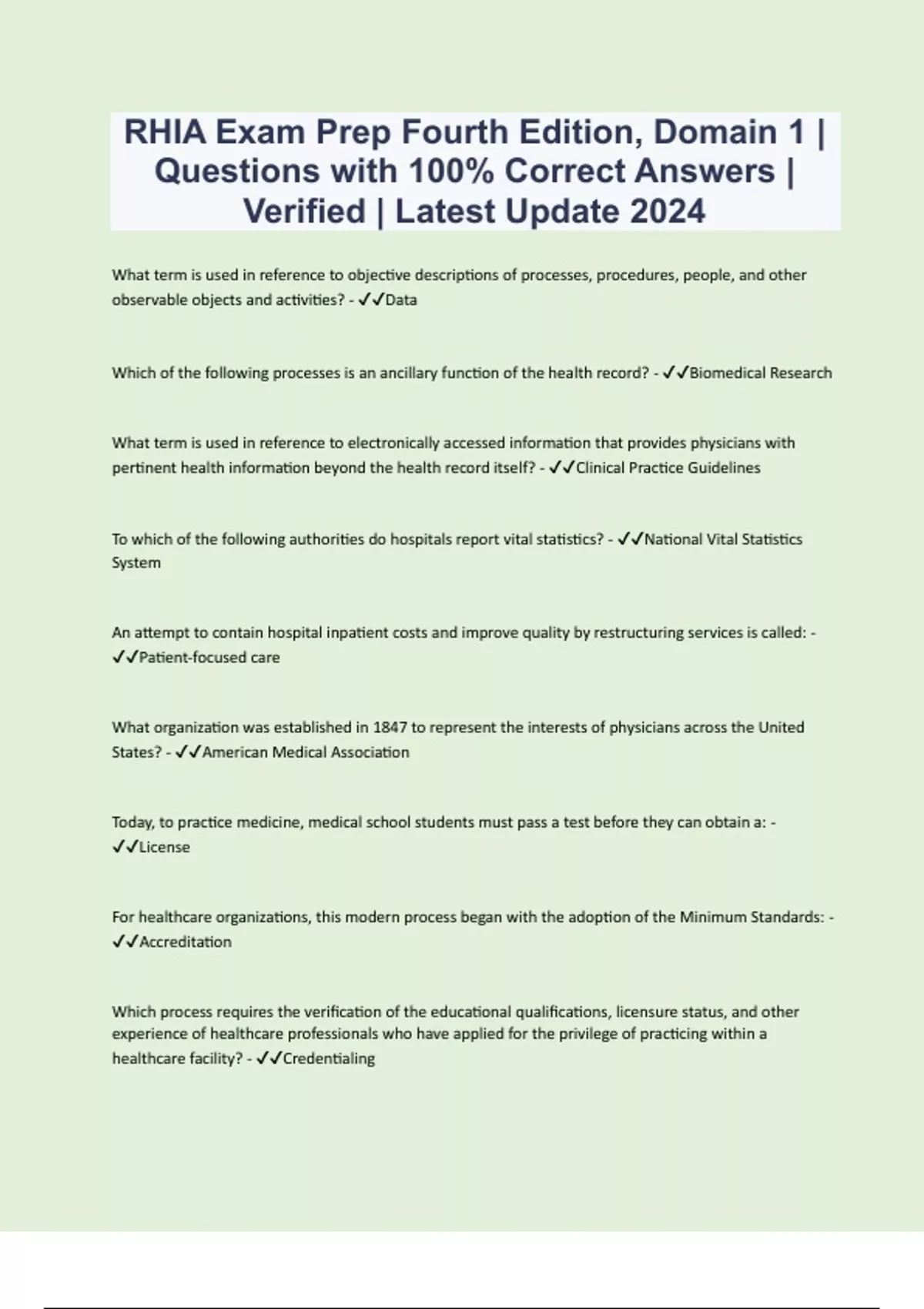 AHIMA RHIA Exam Prep | Questions with 100% Correct Answers | Verified | Latest Update 2024 | 58 Pages