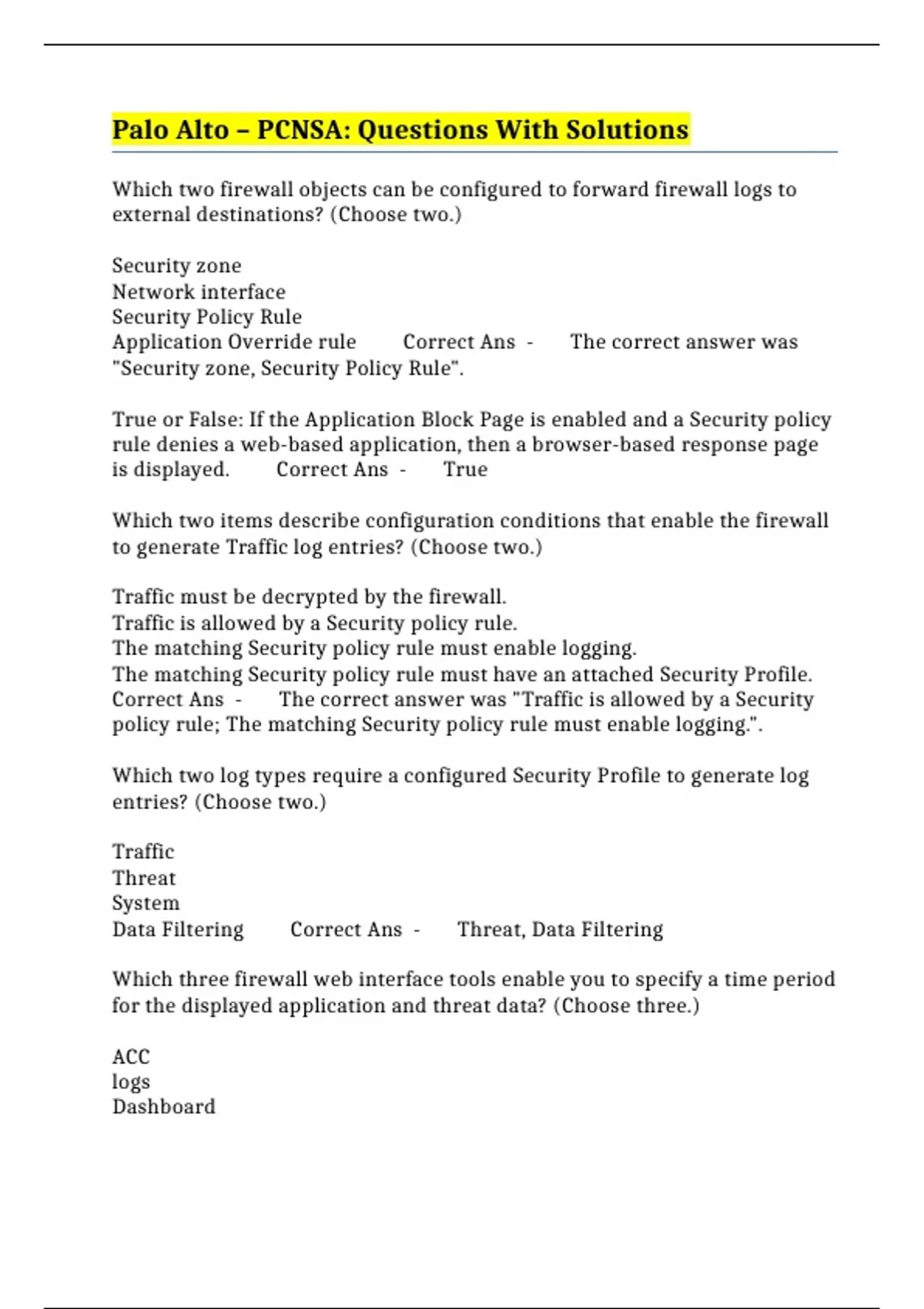 PACKAGE::: PCNSA EXAMS - PALO ALTO CERTIFICATION