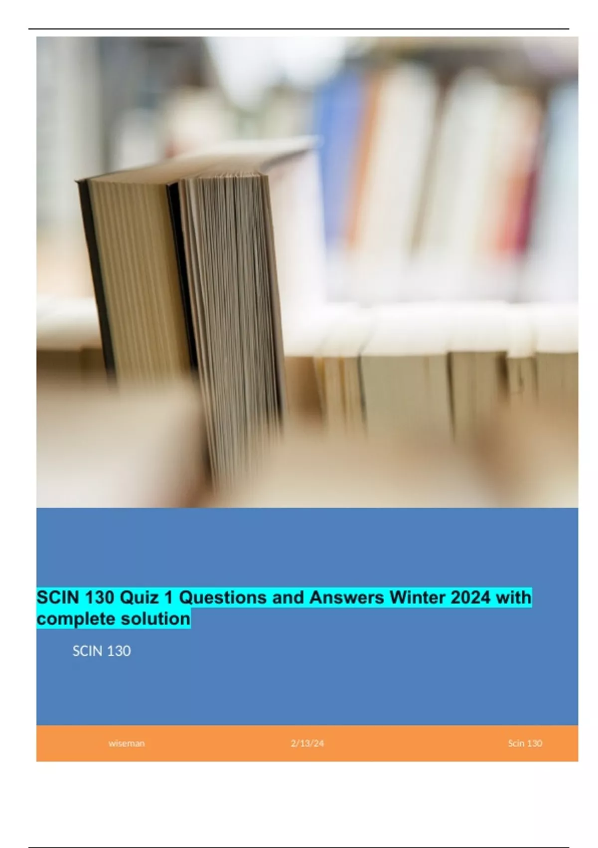 SCIN 130 Quiz 1 Questions and Answers Winter 2024 with complete solution SCIN 130 Quiz 2 questions and answers 2024 with complete solution SCIN 130 QUIZ 3 Winter 2024 Graded A+ SCIN 130 Quiz 4 WINTER 2024 SOLVED 100% SCIN 130 Quiz 5 Questions and Answers Winter 2024 SCI 130 Quiz 7 Winter 2024 with complete solution