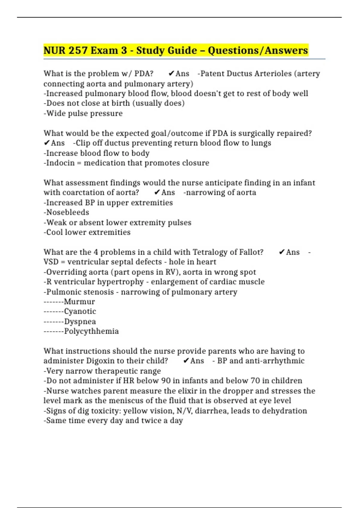VALUE PACK:: NUR 257 EXAMS (LATEST UPDATE)