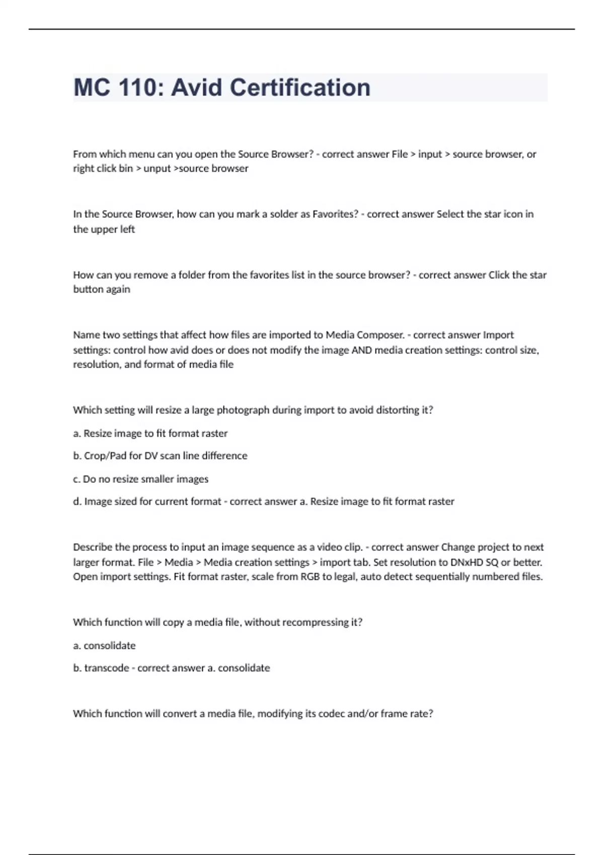- Avid media composer 110 test guide questions ans