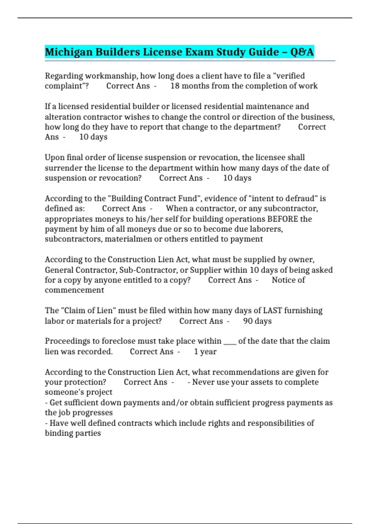 BUNDLE::- MICHIGAN BUILDERS LICENSE EXAMS (LATEST UPDATE)