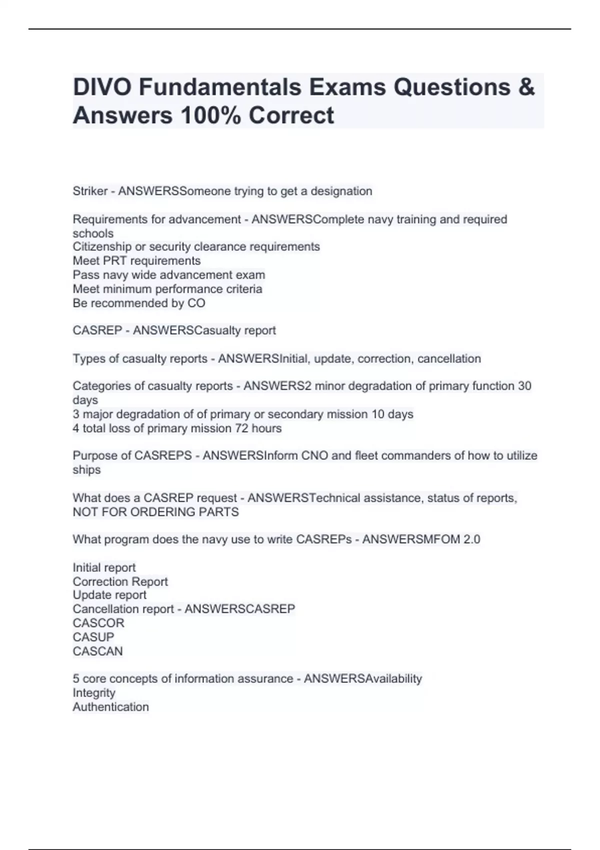 BDOC DIVO Fundamentals Exam Questions & Answers(SCORED A+)