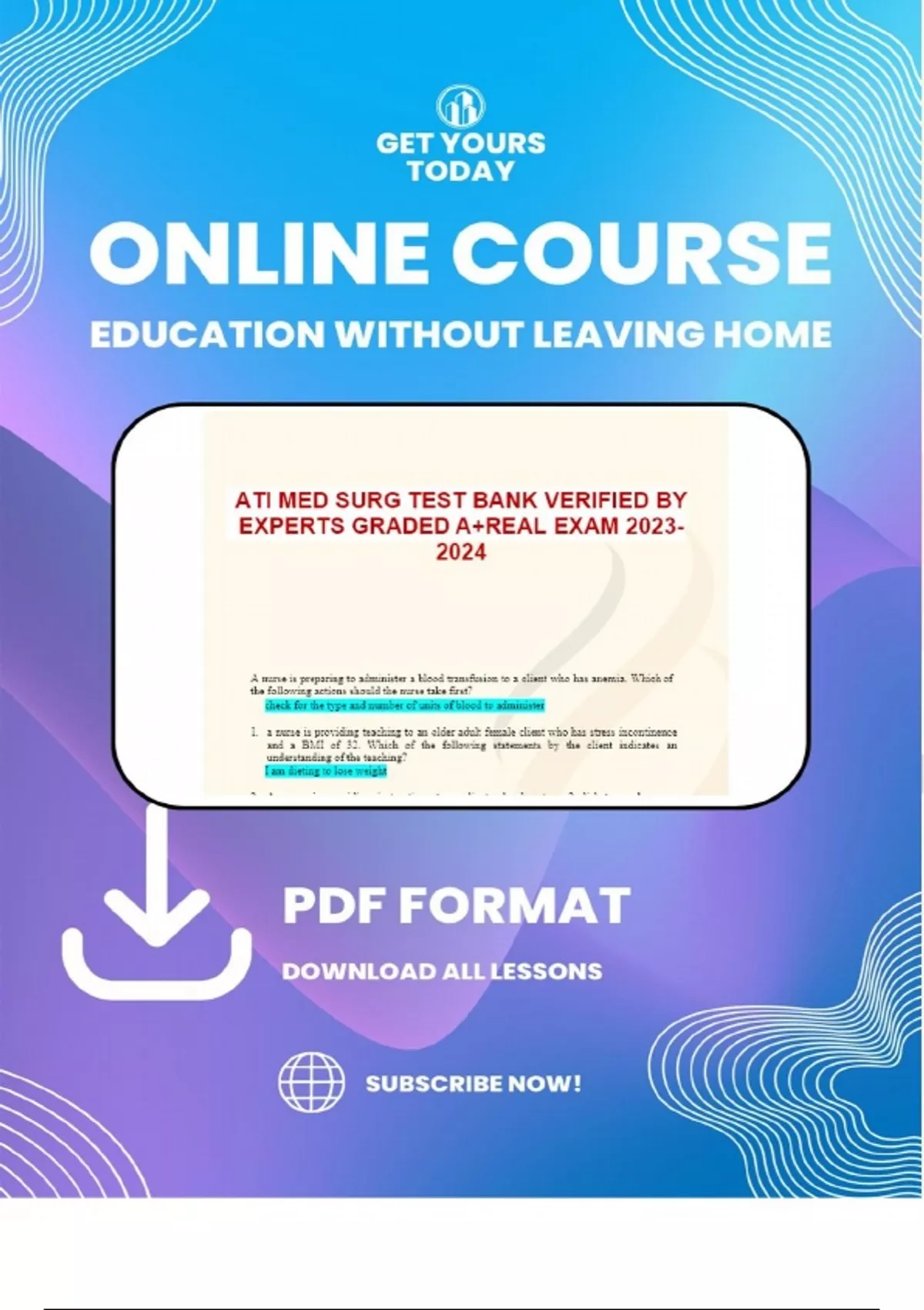 ATI MED SURG TEST BANK VERIFIED BY EXPERTS ATI MED SURG TEST BANK VERIFIED BY EXPERTS
