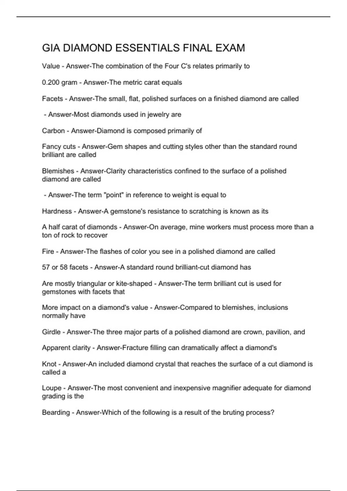 GIA DIAMOND ESSENTIALS FINAL EXAMS BUNDLE