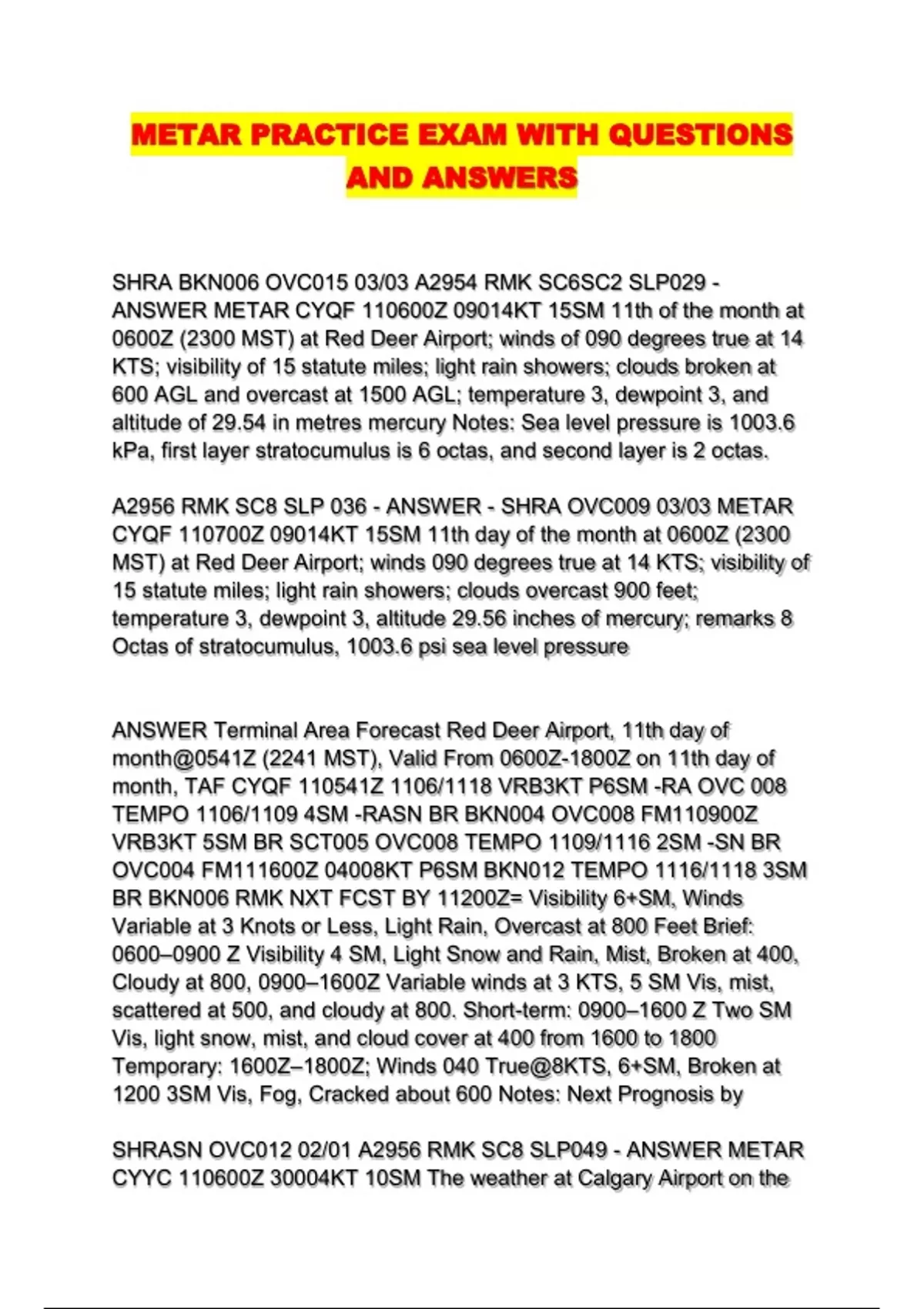 METAR PRACTICE EXAM WITH QUESTIONS AND ANSWERS