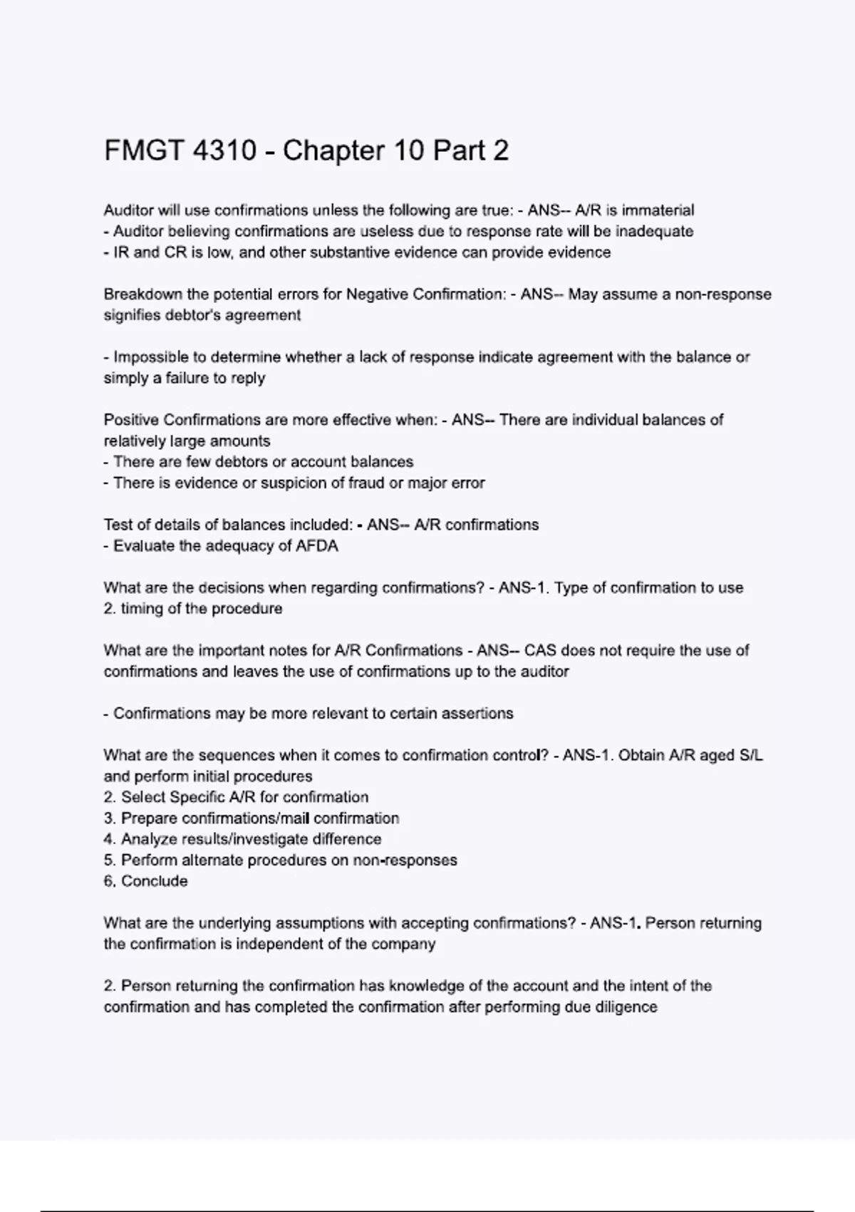FMGT 4310 - Chapter 8 Execution of the Audit.